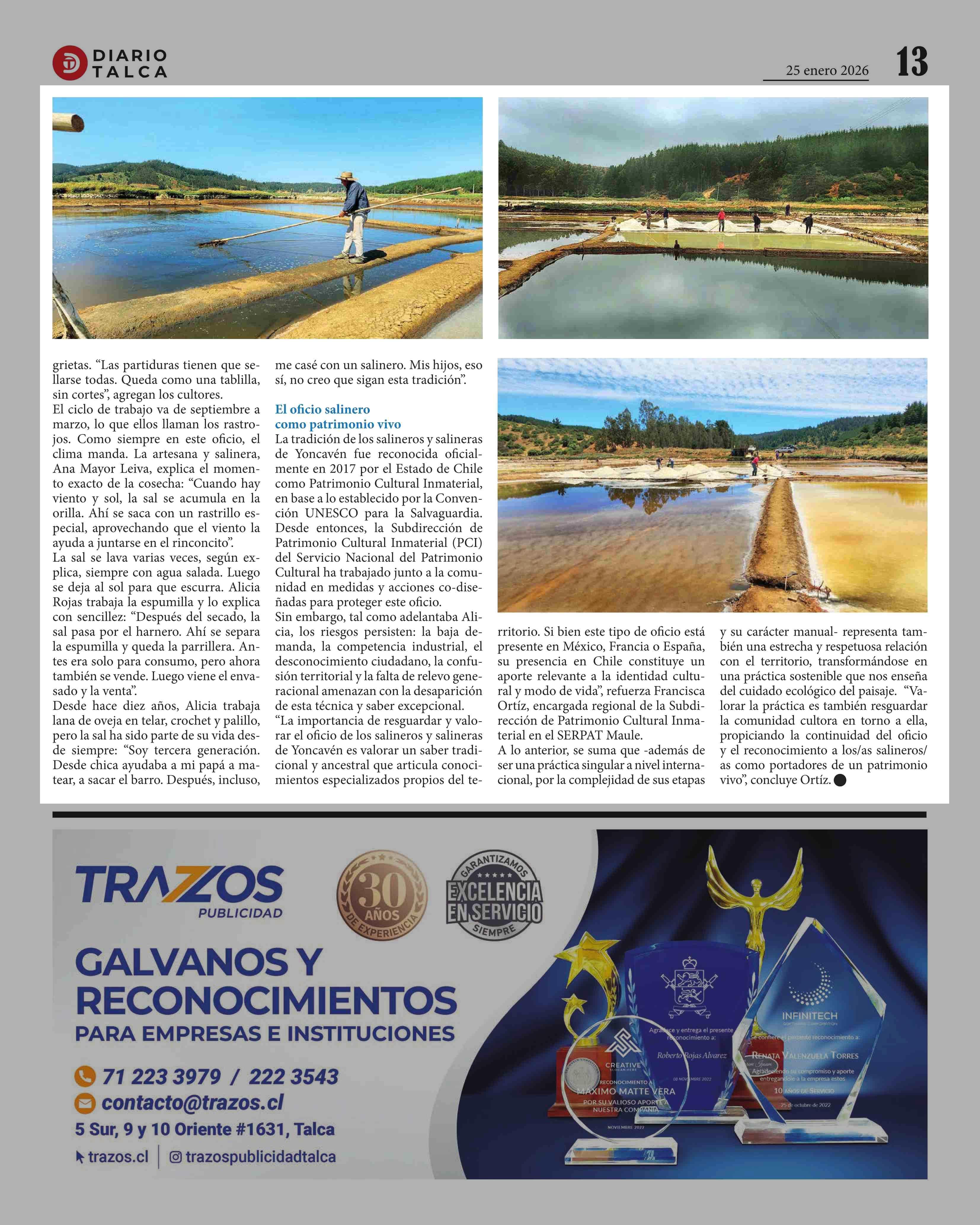 Salineros de Yoncavén: donde el sol, el viento y el agua hacen memoria 25-01-2026 Diario Talca |