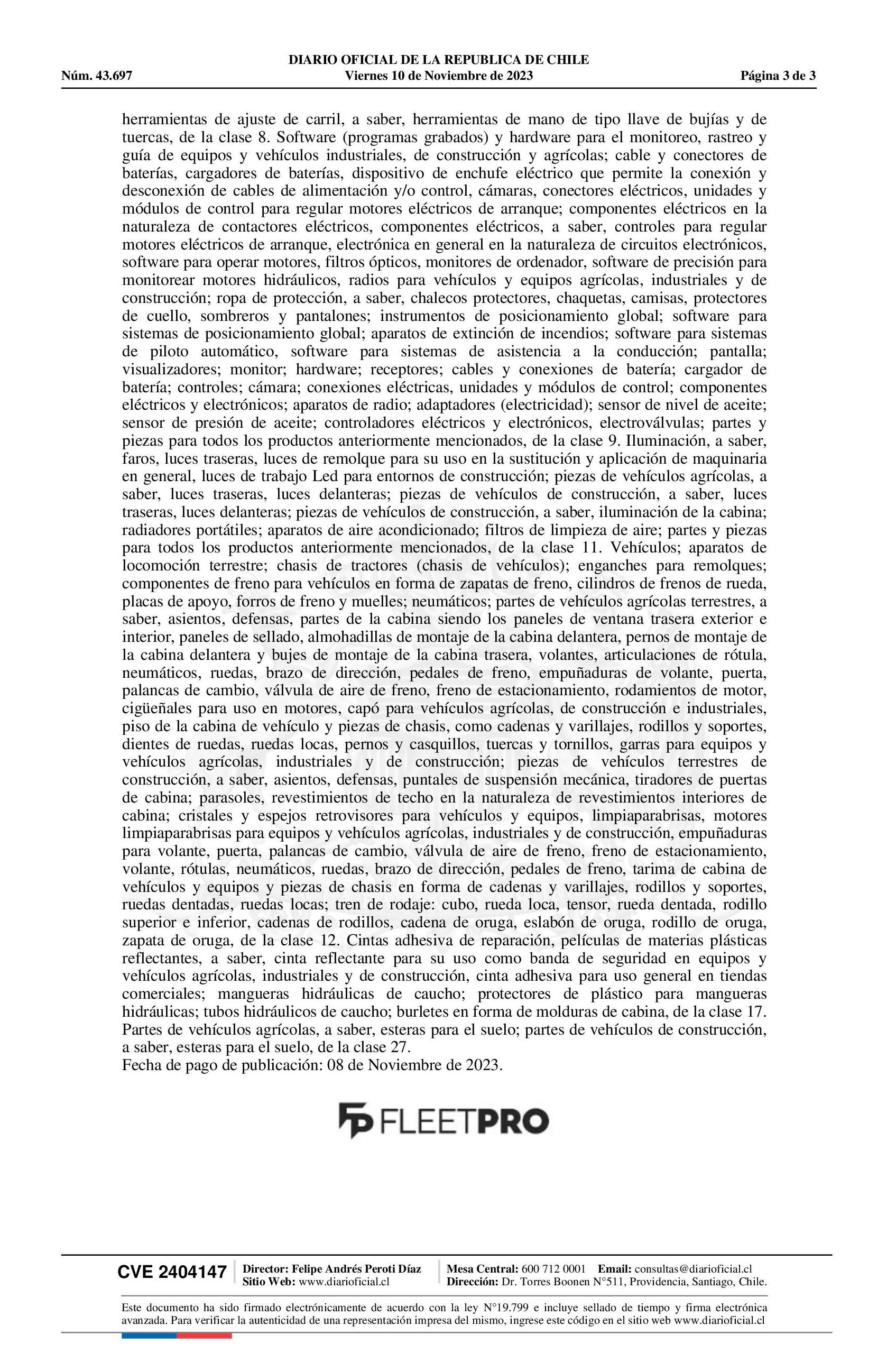 | Fuente: | Diario Oficial Edición Electrónica (Diario Oficial de Chile - 6 Marcas Y Patentes) | Página(s): | 22-24 |