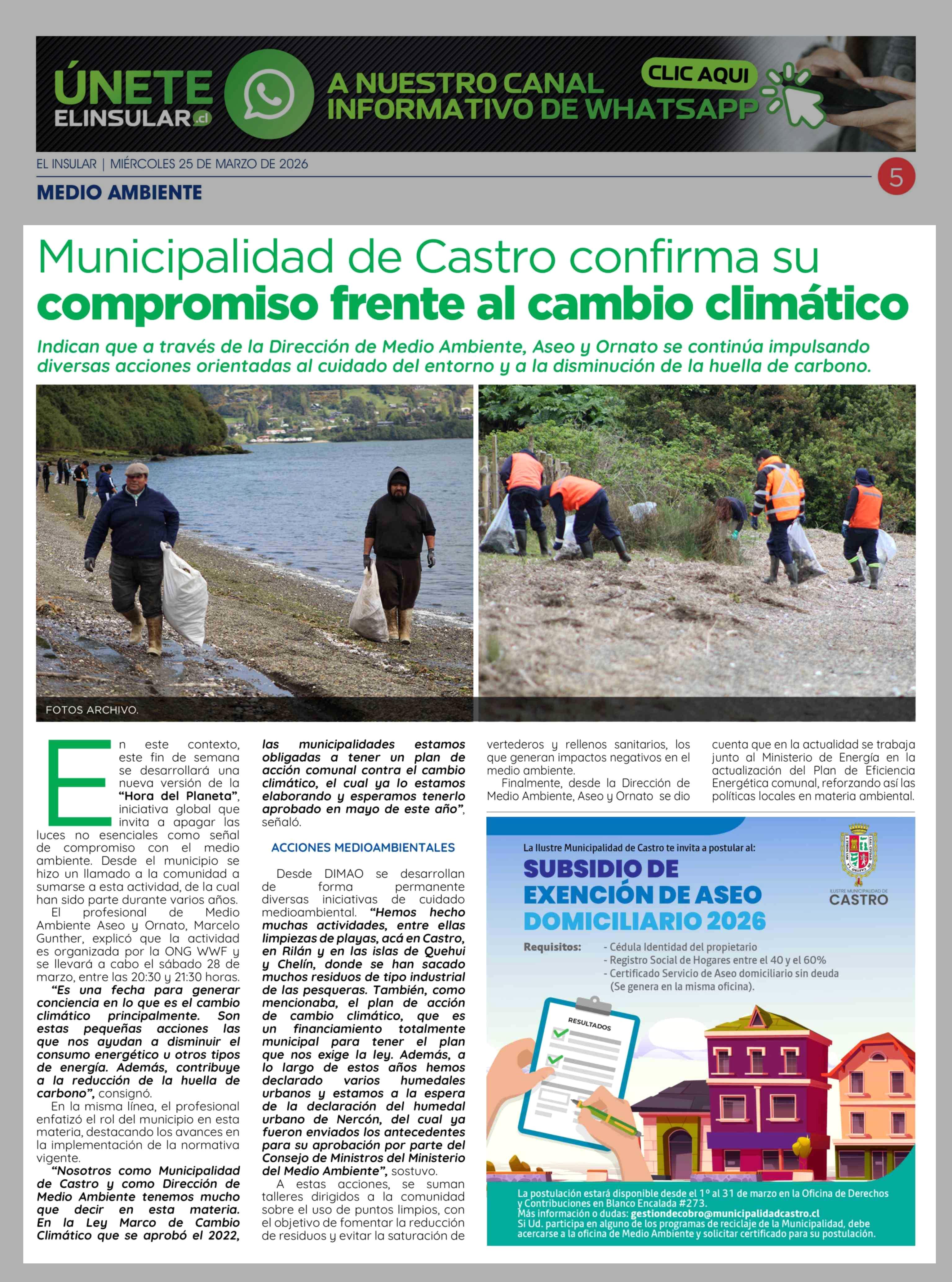 Municipalidad de Castro confirma su compromiso frente al cambio climático 25-03-2026 El Insular |