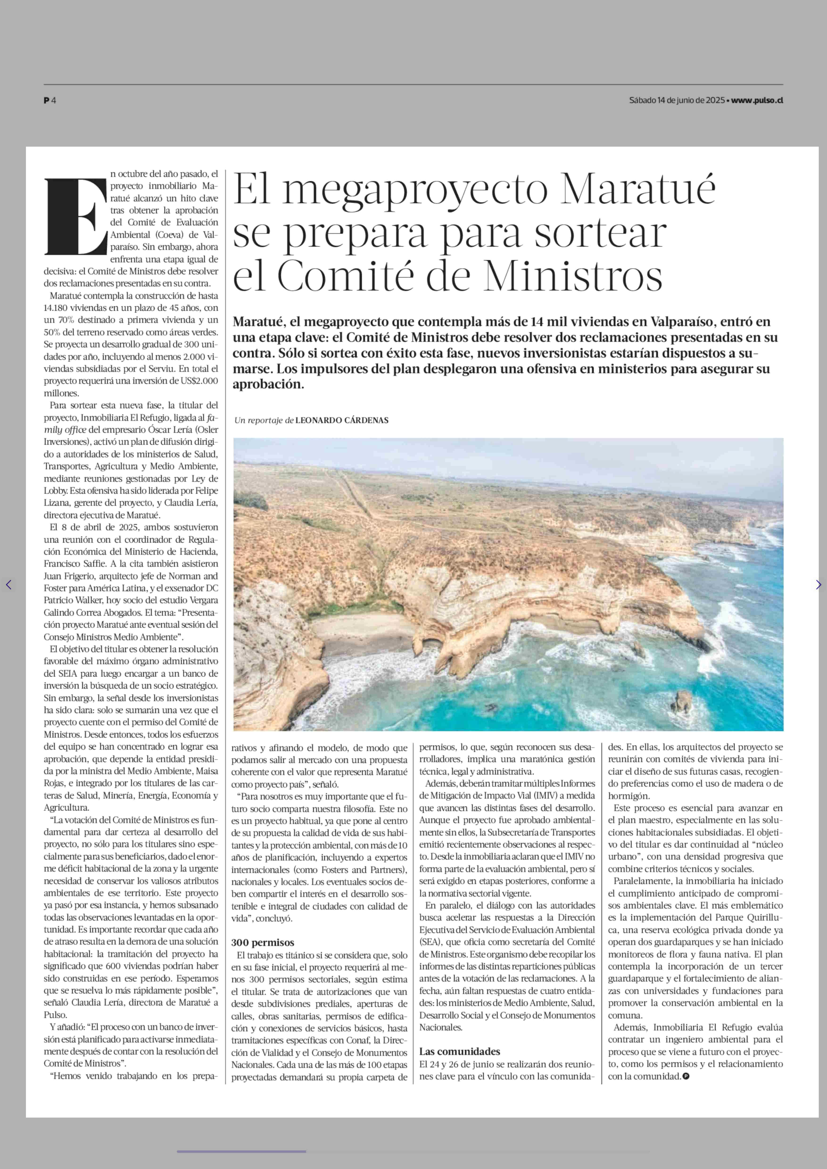 El megaproyecto Maratué se prepara para sortear el Comité de Ministros 14-06-2025 La Tercera |