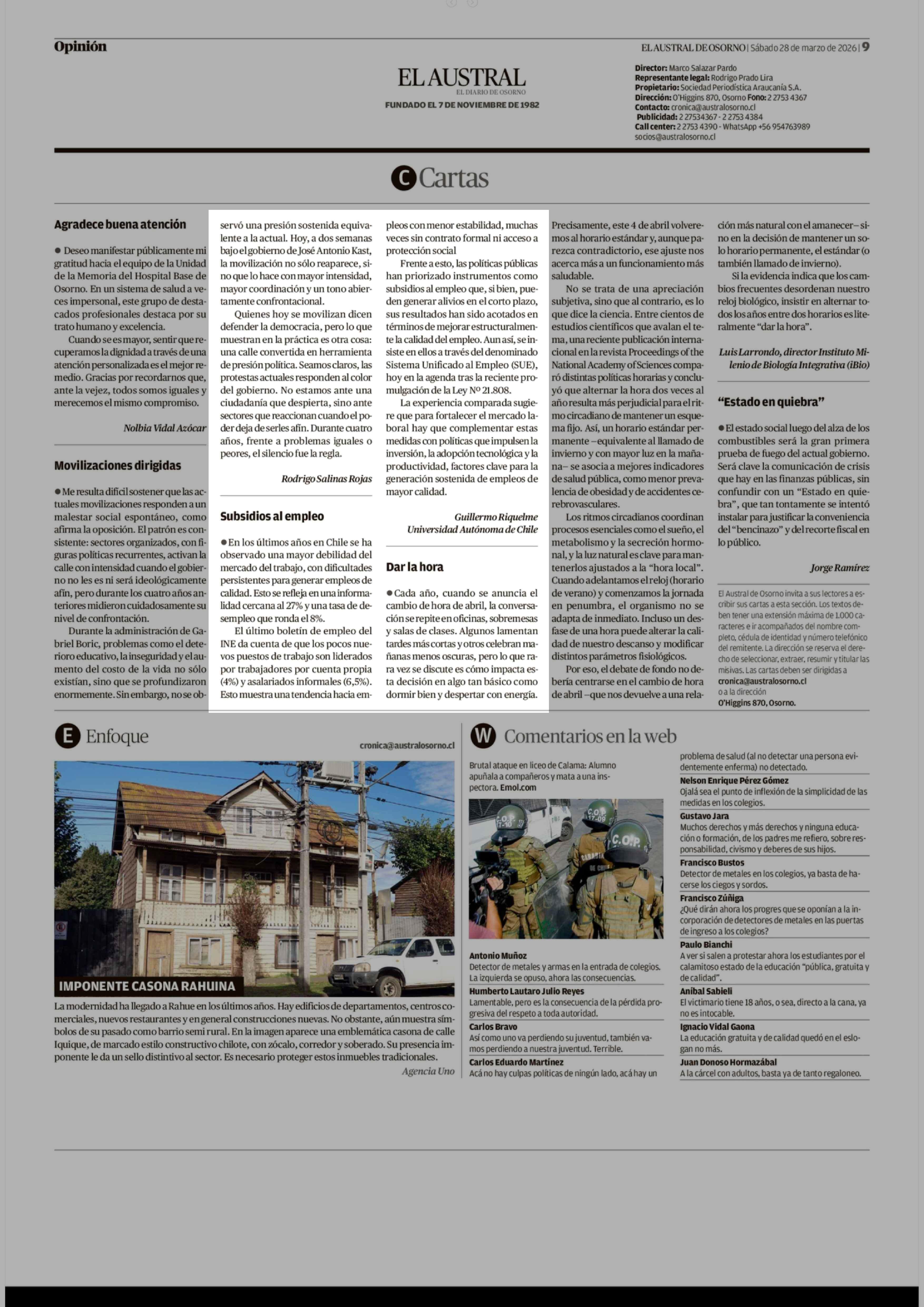 Sin asignar 28-03-2026 El Austral de Osorno |