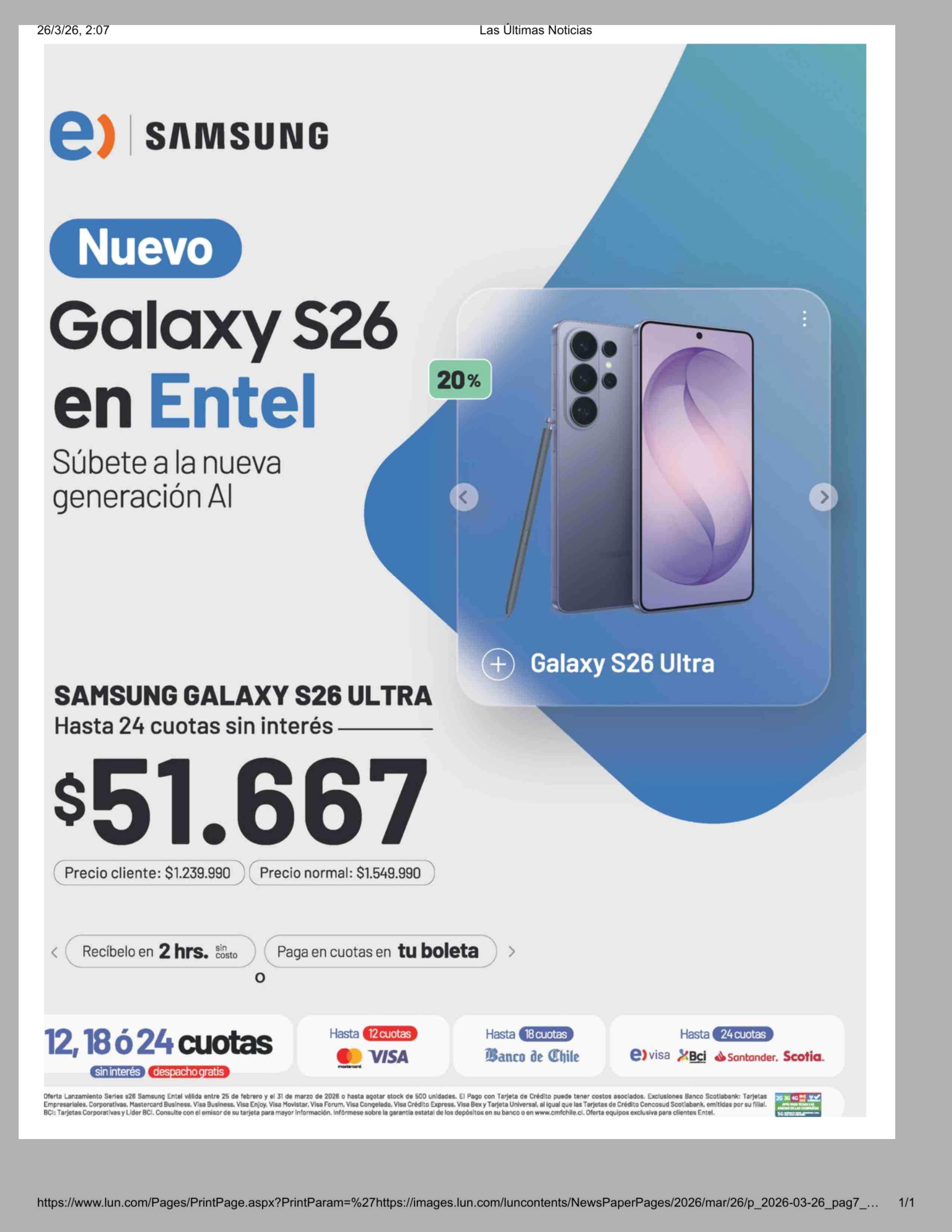 Aviso Celulares: ENTEL 26-03-2026 Las Últimas Noticias |