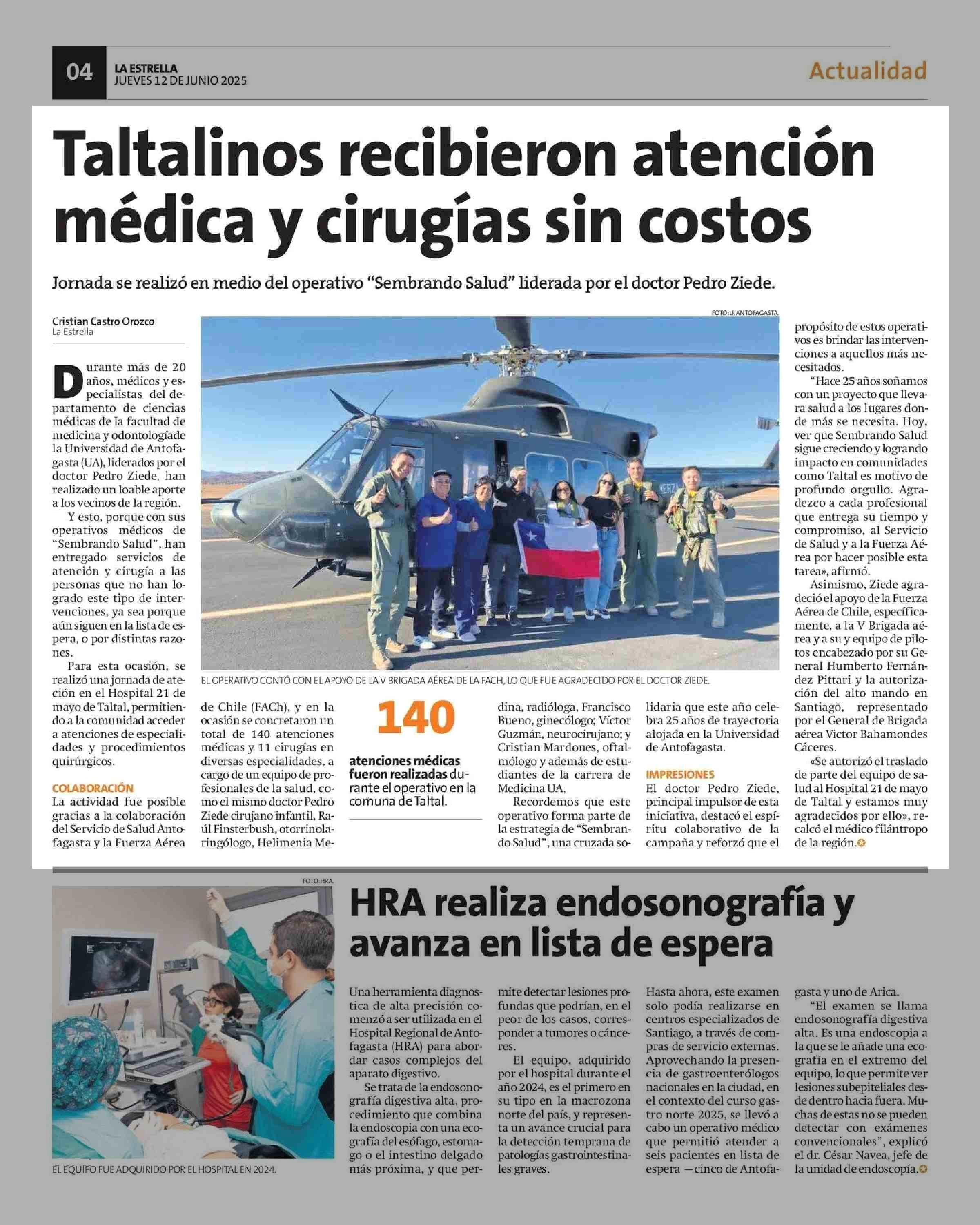 Taltalinos recibieron atención médica y cirugías sin costos 12-06-2025 La Estrella de Antofagasta |