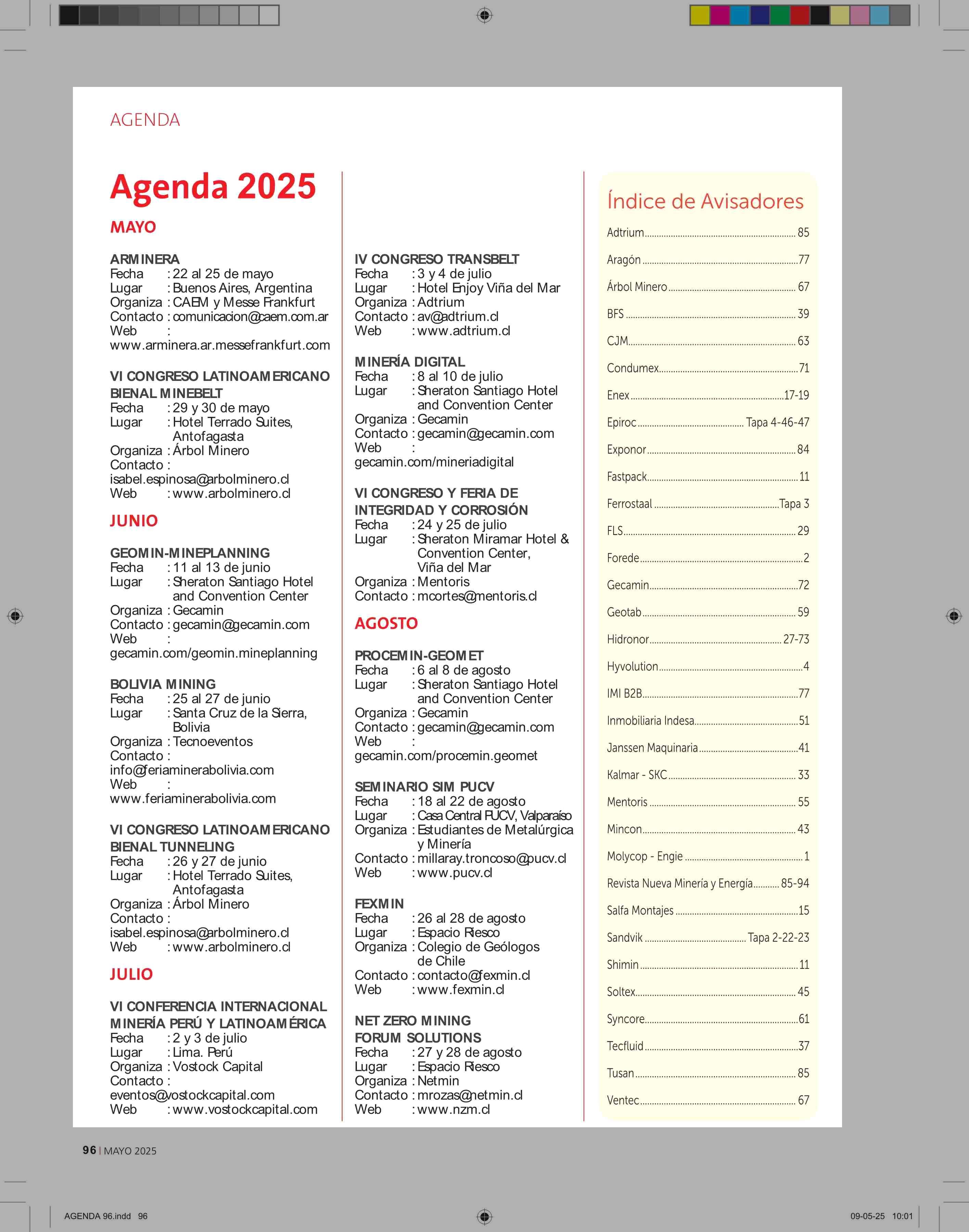 Índice de Avisadores 19-05-2025 Revista Nueva Minería & Energía |