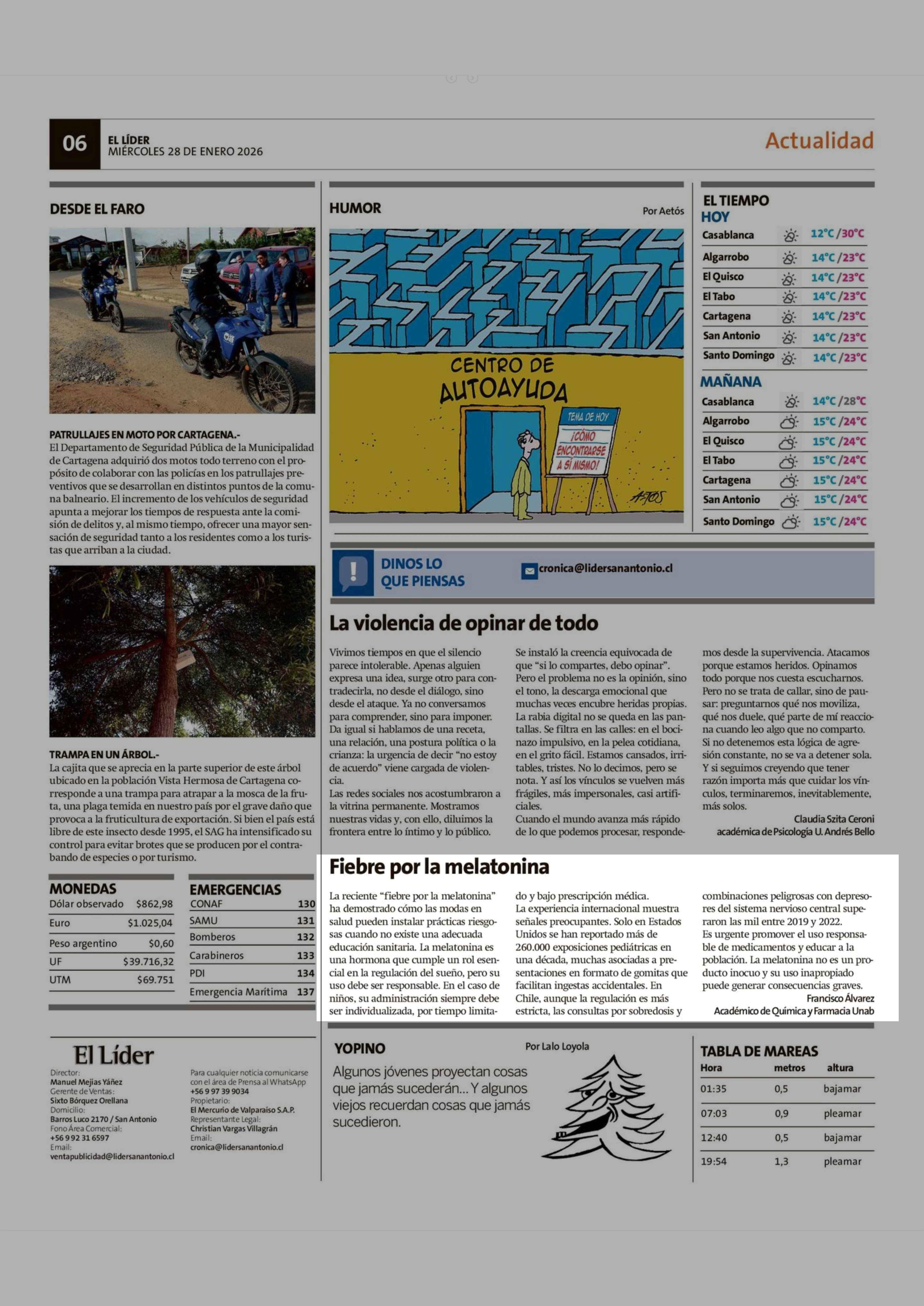 CARTAS: Fiebre por la melatonina 28-01-2026 El Líder |