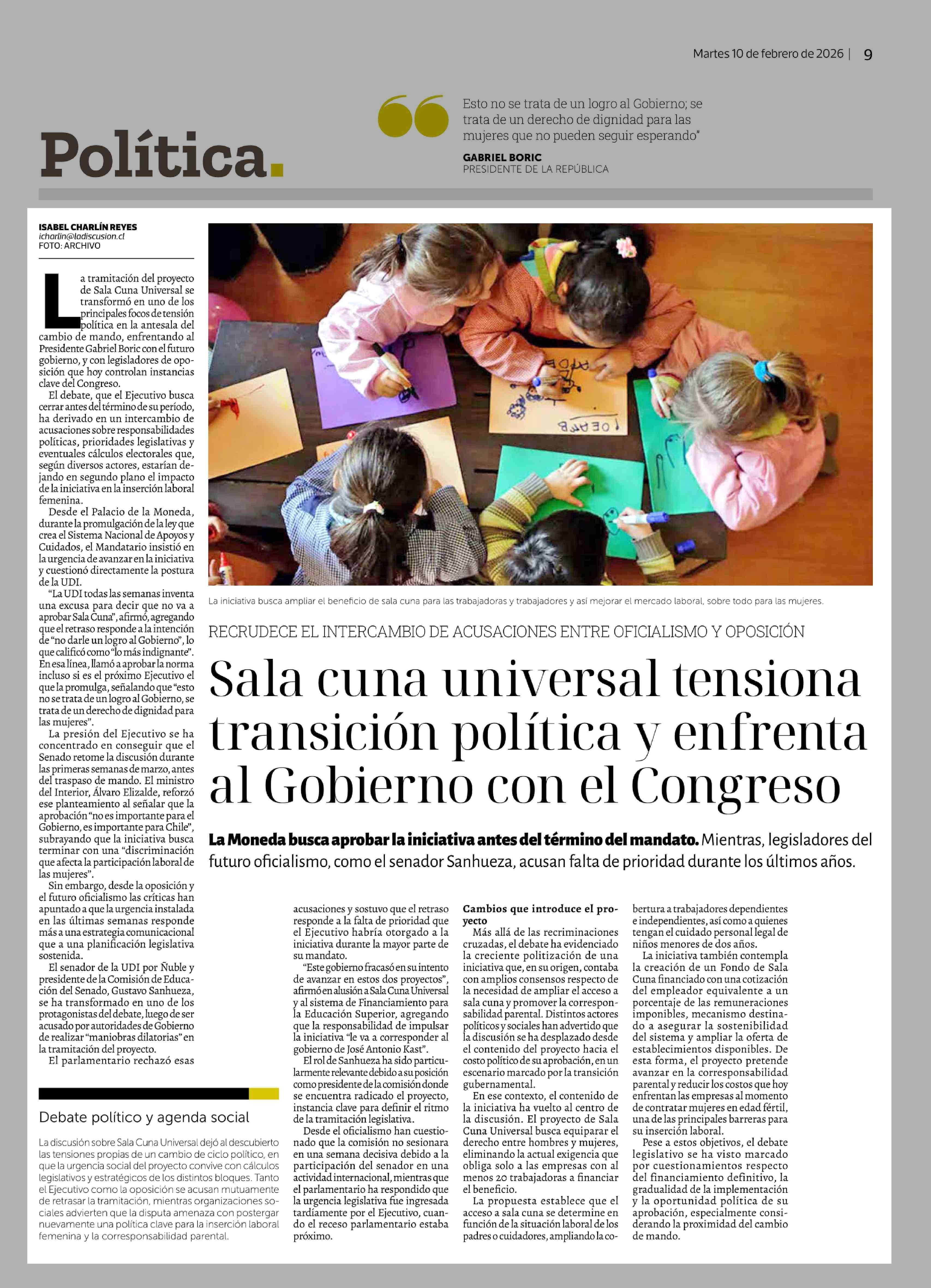 Título: Sala cuna universal tensiona transición política y enfrenta al Gobierno con el Congreso