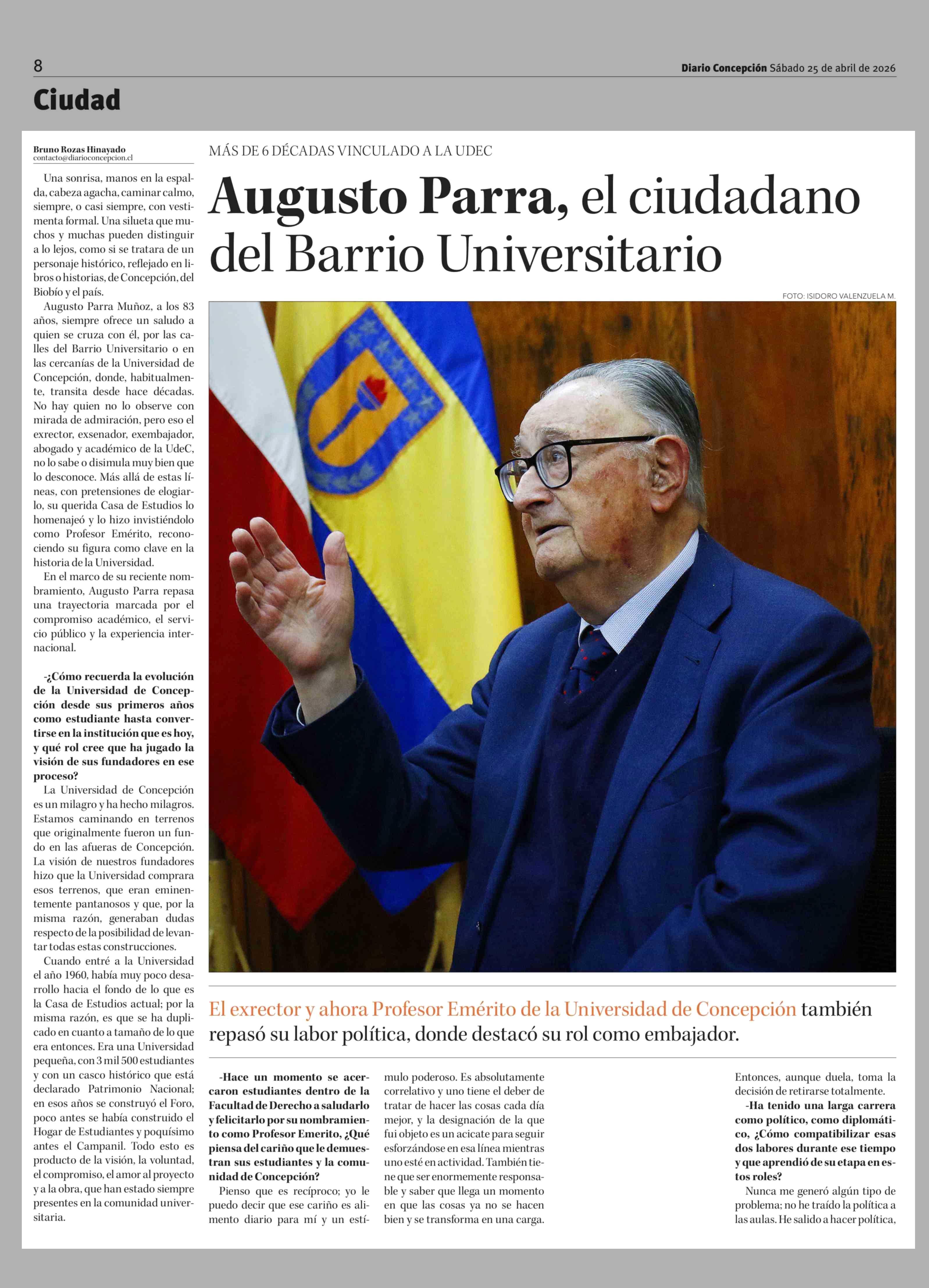 Augusto Parra, el ciudadano del Barrio Universitario 25-04-2026 Diario Concepción |