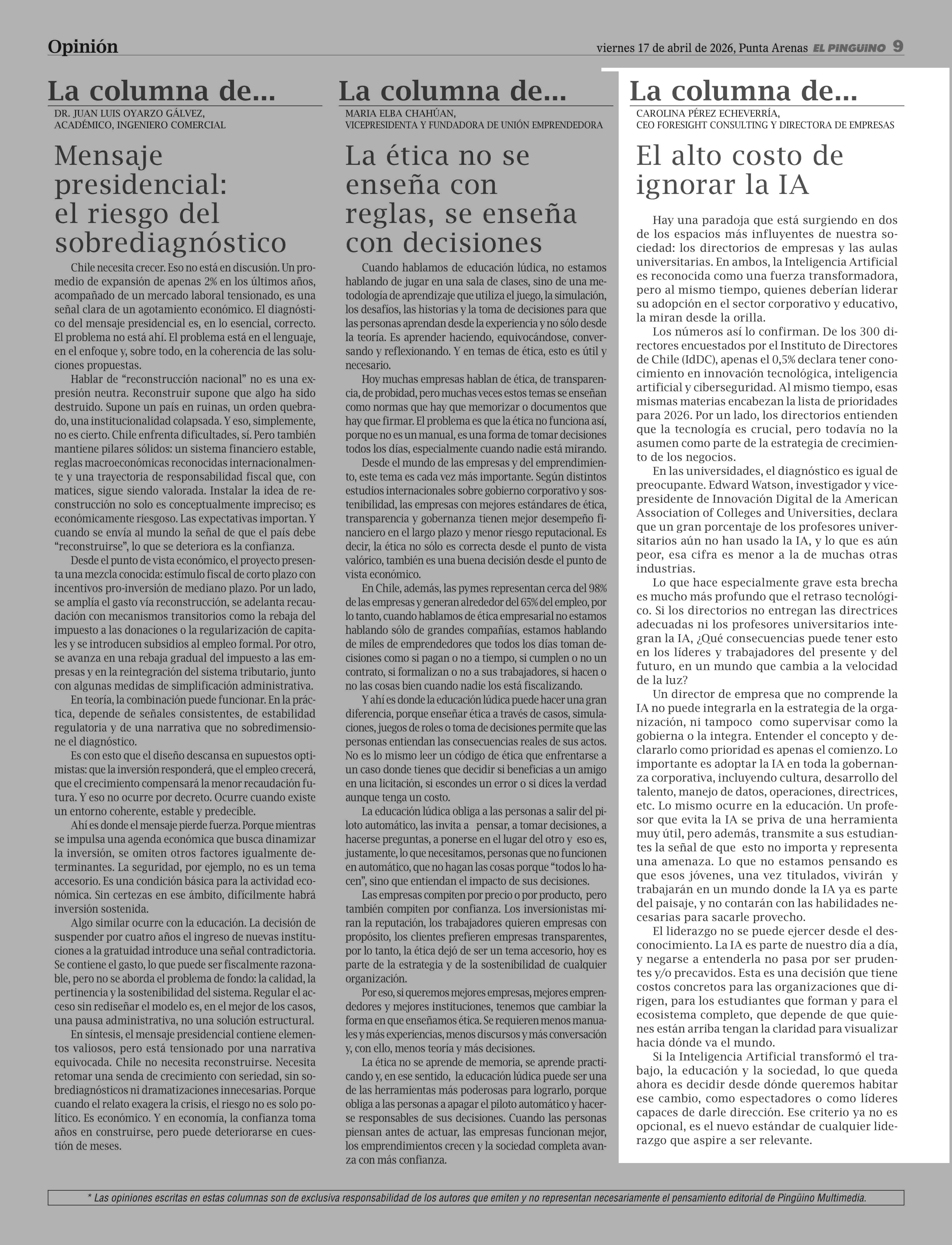 COLUMNAS DE OPINIÓN: El alto costo de ignorar la IA 17-04-2026 El Pingüino |