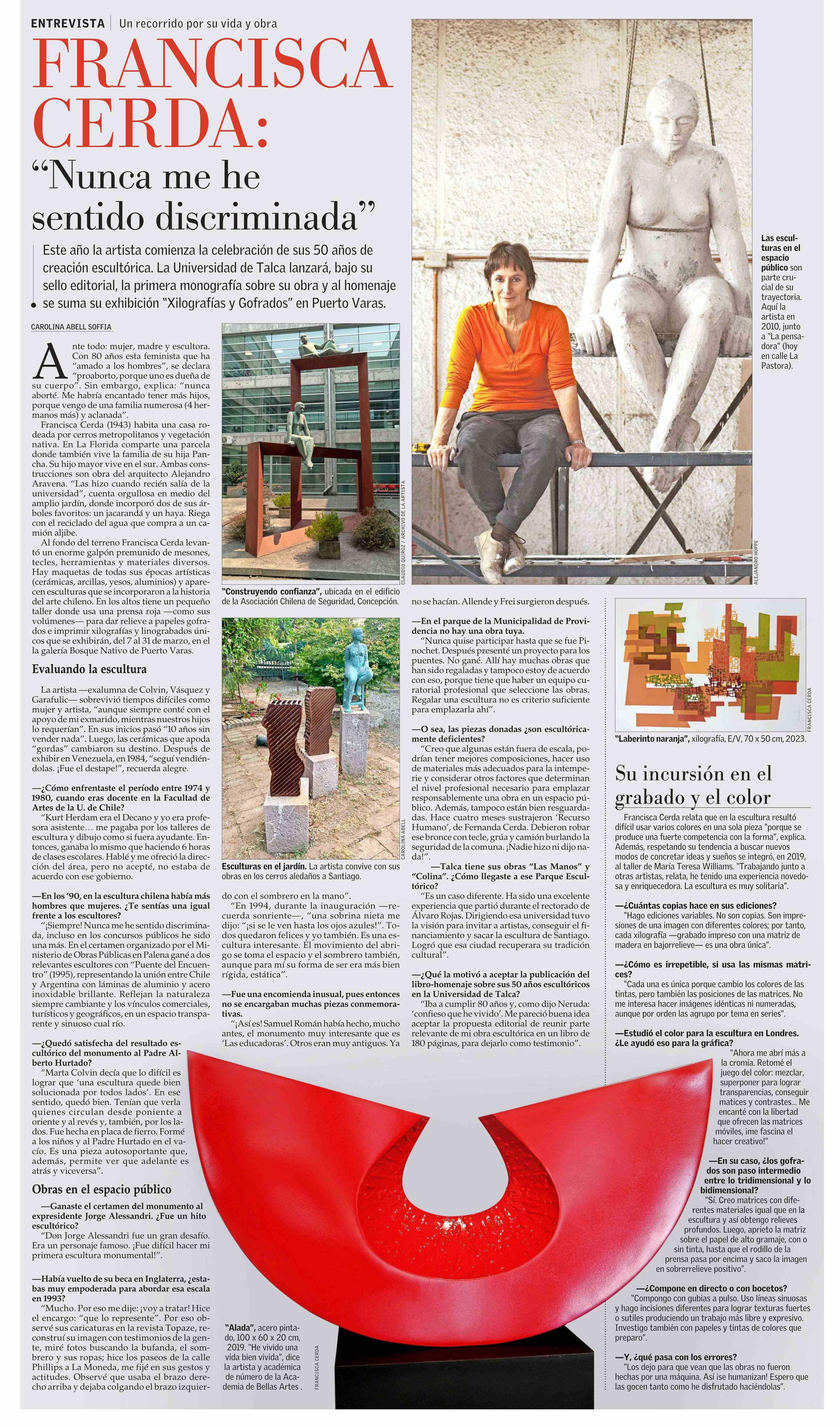 FRANCISCA CERDA: “Nunca me he sentido discriminada” 03-03-2024 El Mercurio |