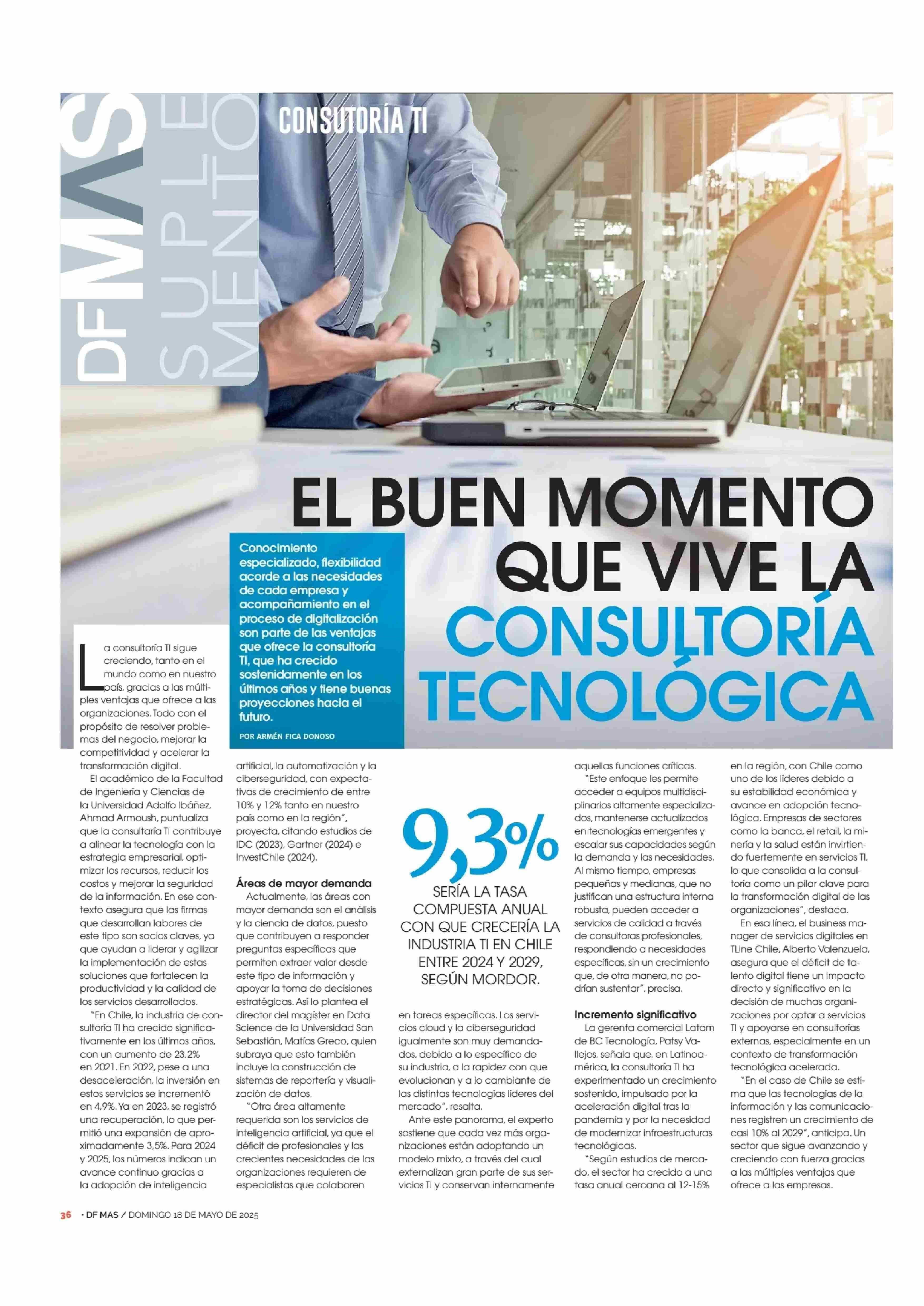 EL BUEN MOMENTO QUE VIVE LA CONSULTORÍA TECNOLÓGICA 18-05-2025 Diario Financiero |