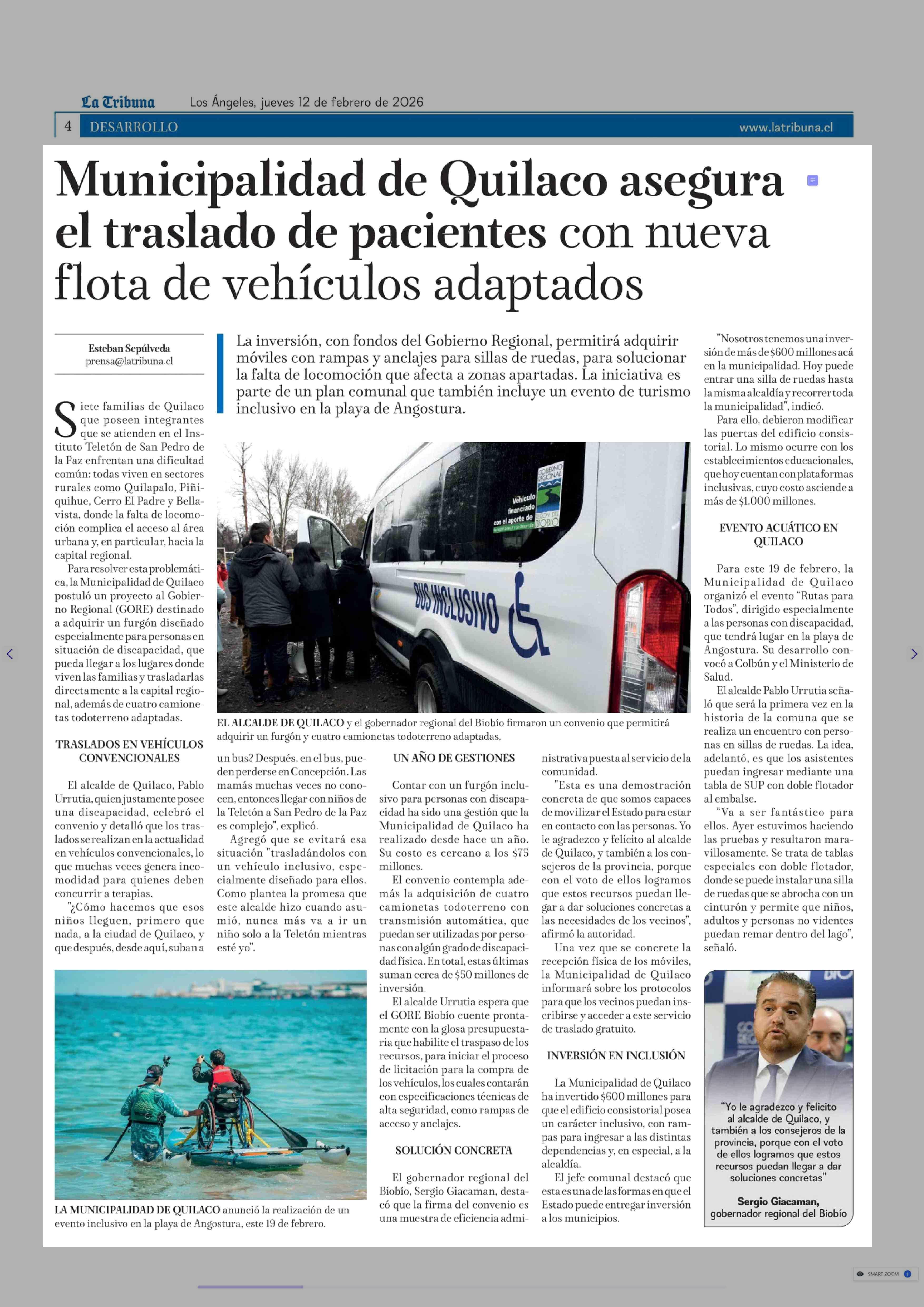 Municipalidad de Quilaco asegura el traslado de pacientes con nueva flota de vehículos adaptados 12-02-2026 La Tribuna |