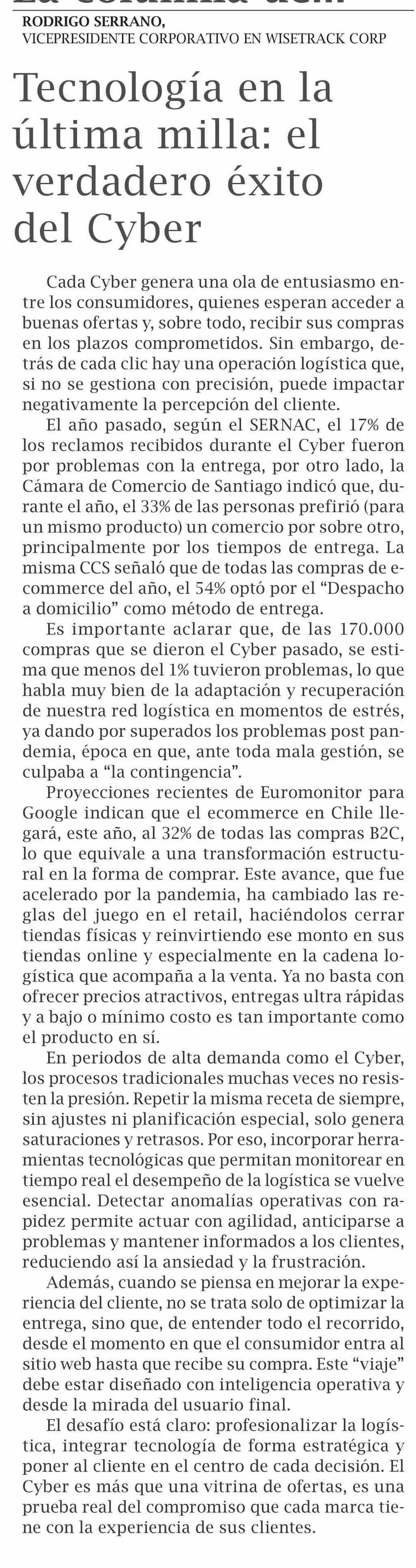 | Título: | Columnas de Opinión: Tecnología en la última milla: el verdadero éxito del Cyber |