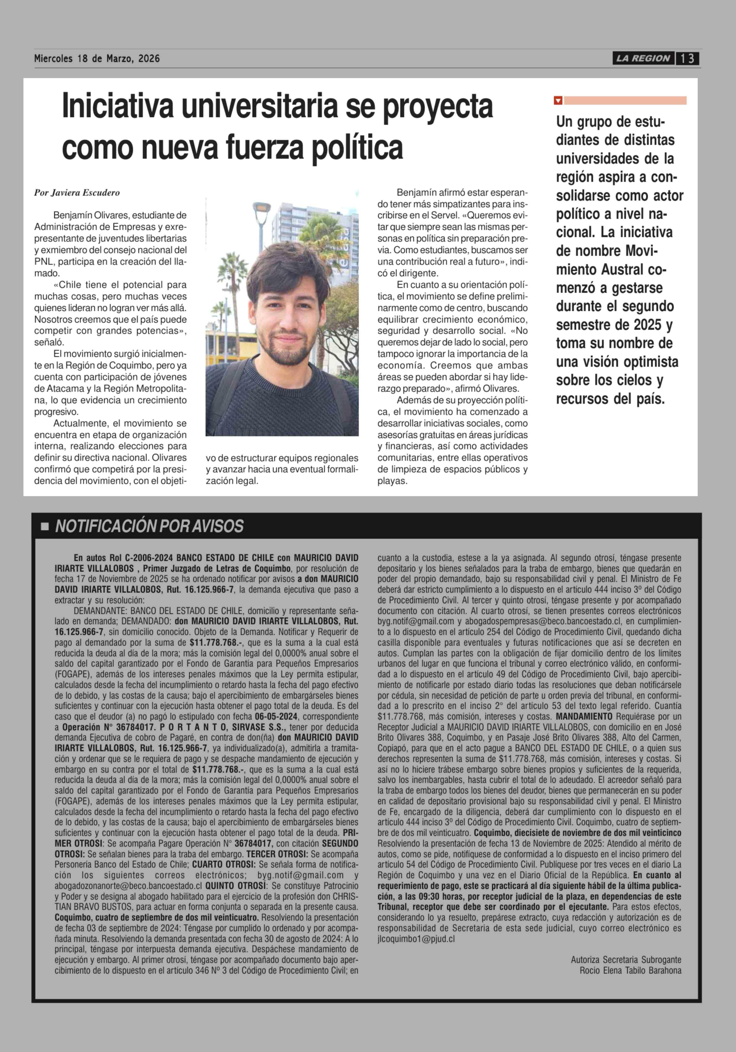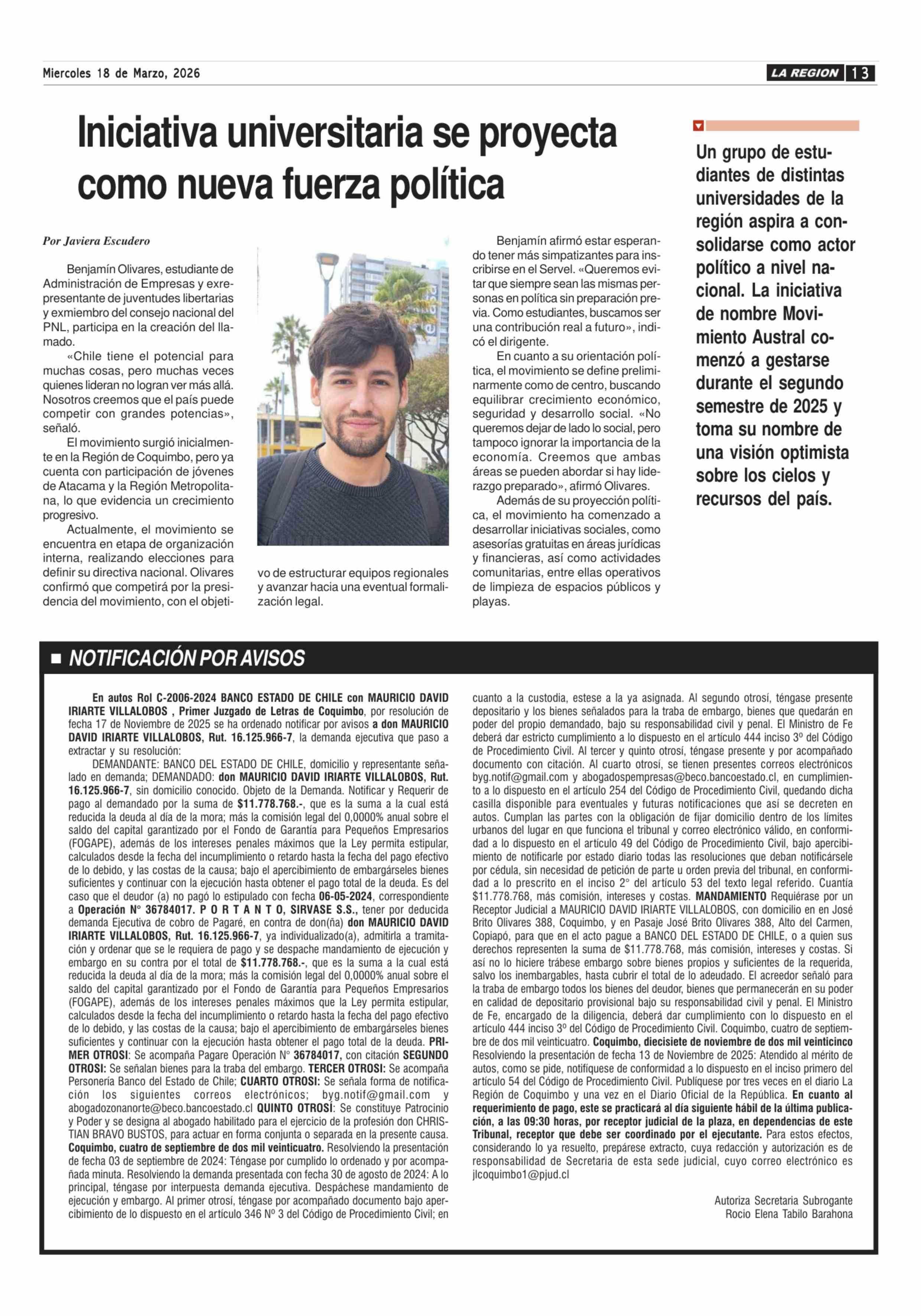 Fecha: 18-03-2026 Sector: Noticia general Región: Región de Coquimbo