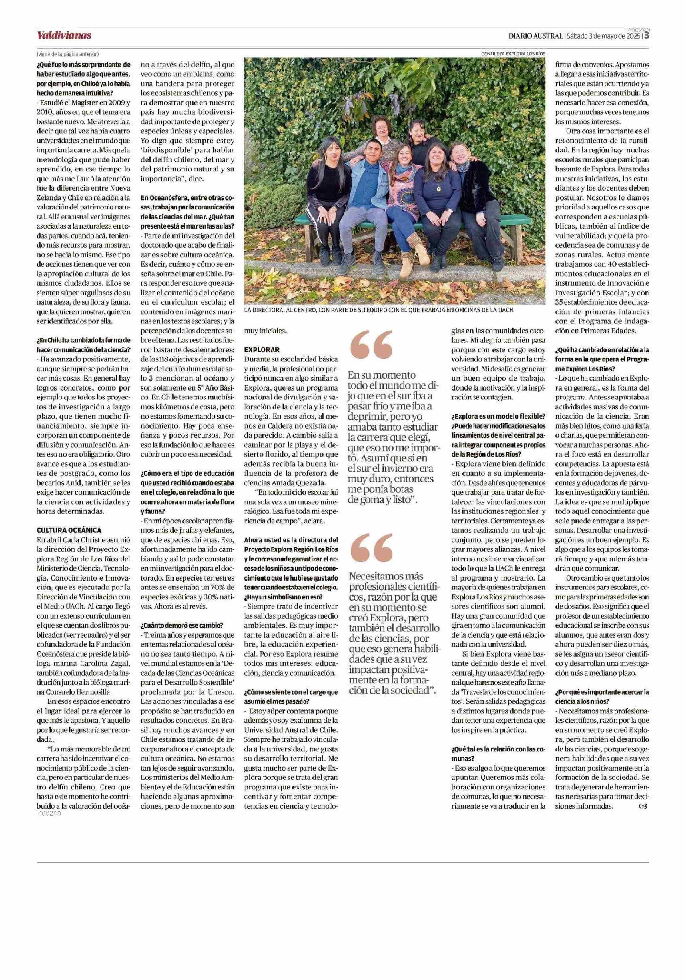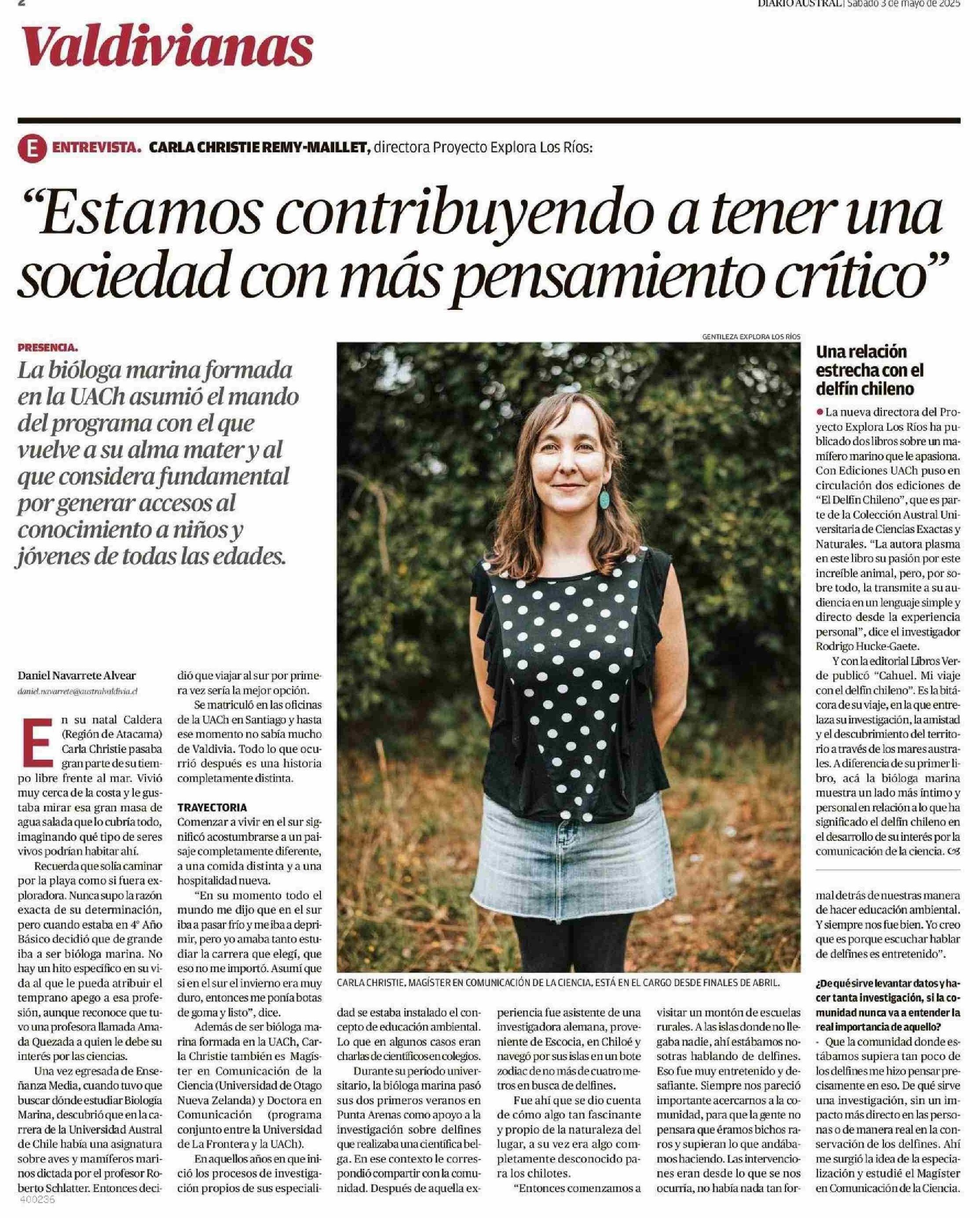 “Estamos contribuyendo a tener una sociedad con más pensamiento crítico” 03-05-2025 Diario Austral Región de Los Ríos |