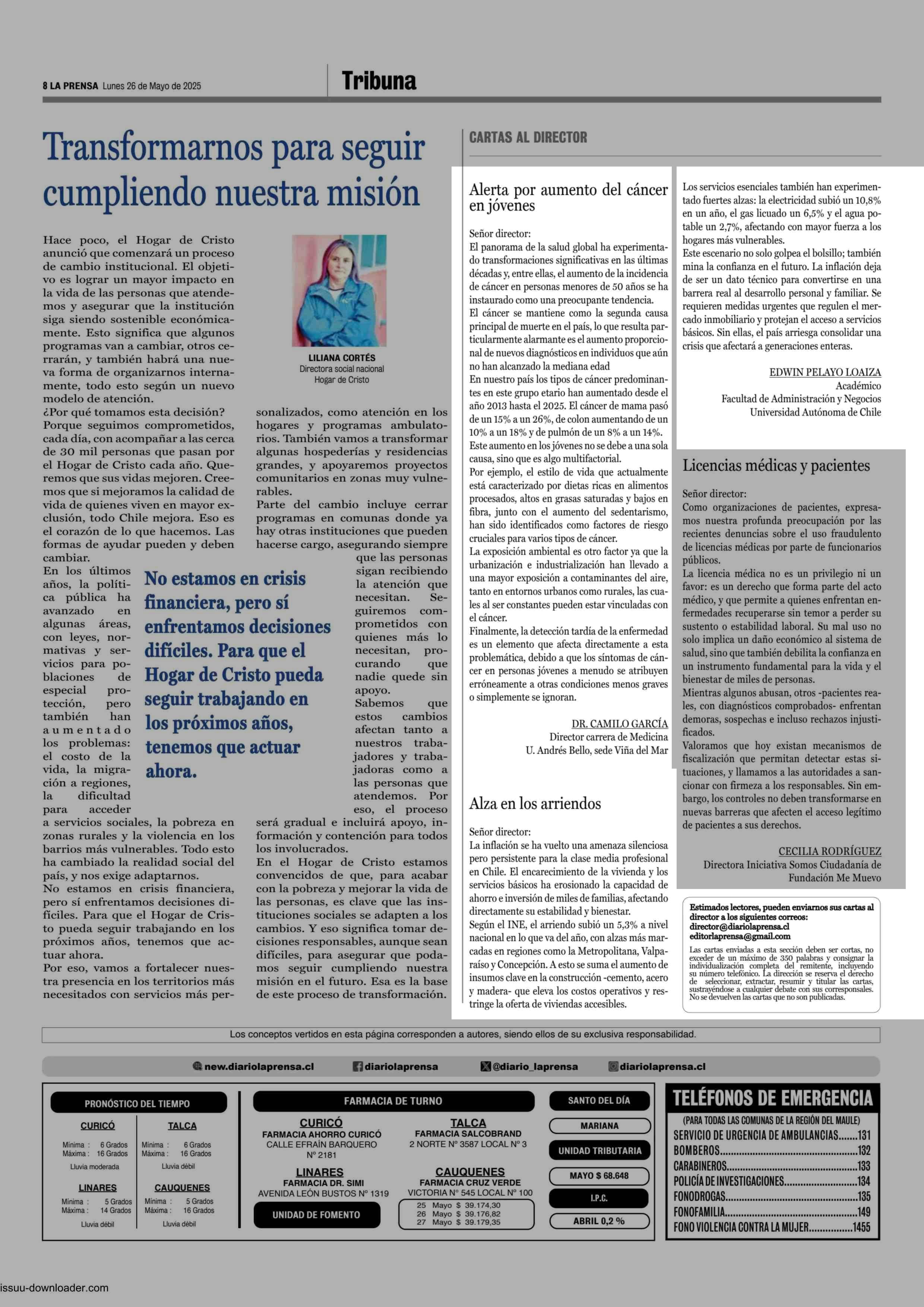 CARTAS: Alza en los arriendos 26-05-2025 La Prensa de Curicó |