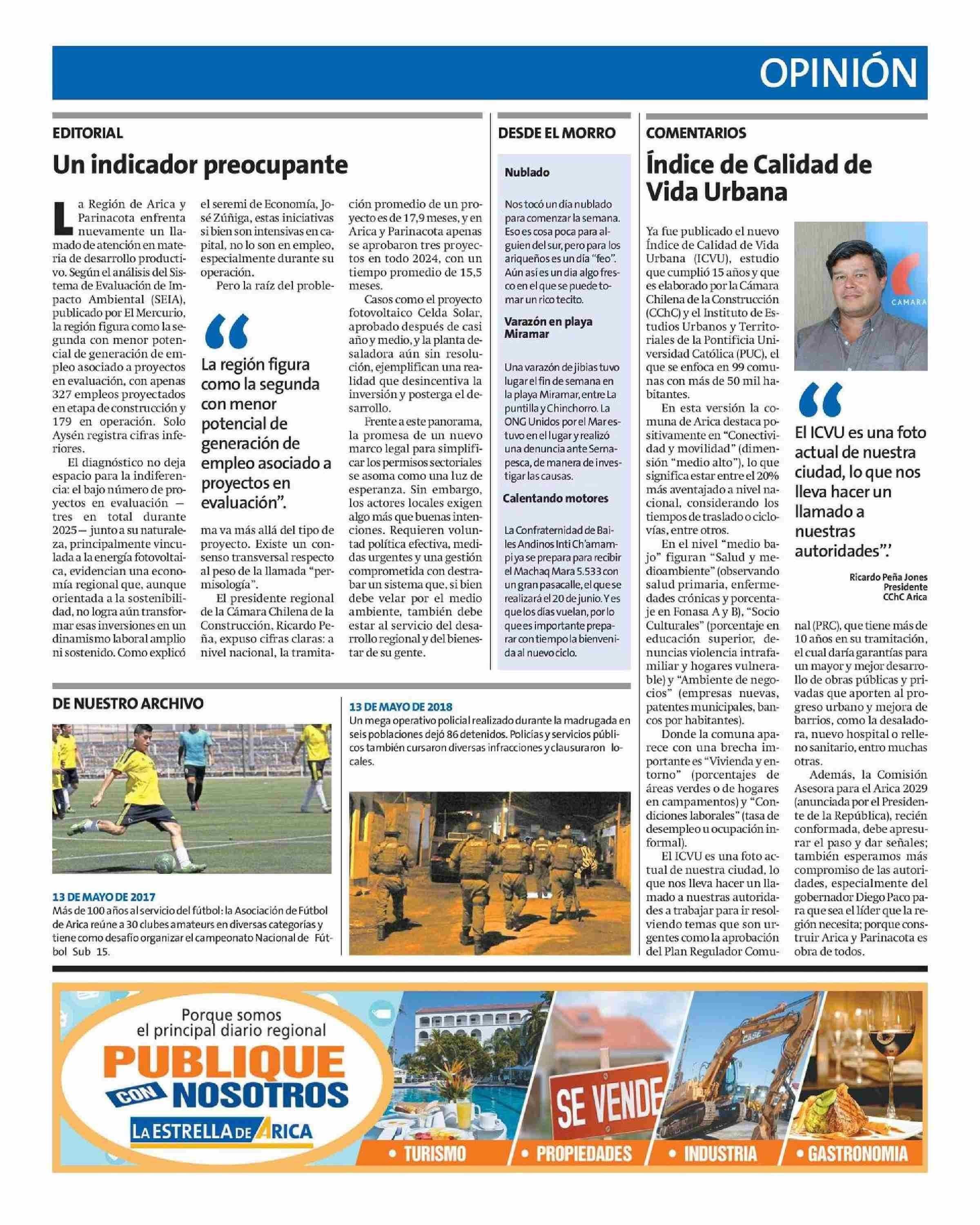 Columnas de Opinión: Índice de Calidad de Vida Urbana 13-05-2025 La Estrella de Arica |