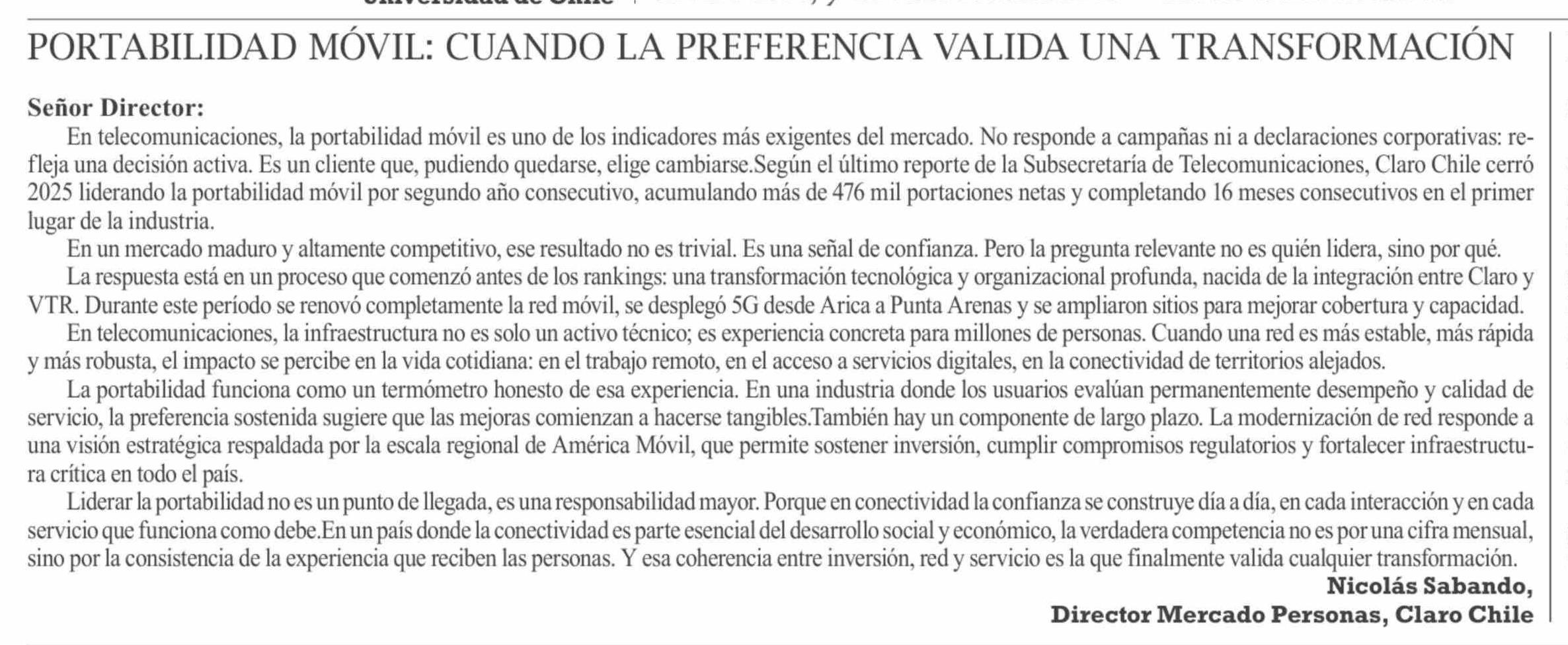 Cartas: PORTABILIDAD MÓVIL: CUANDO LA PREFERENCIA VALIDA UNA TRANSFORMACIÓN 04-03-2026 El Pingüino |