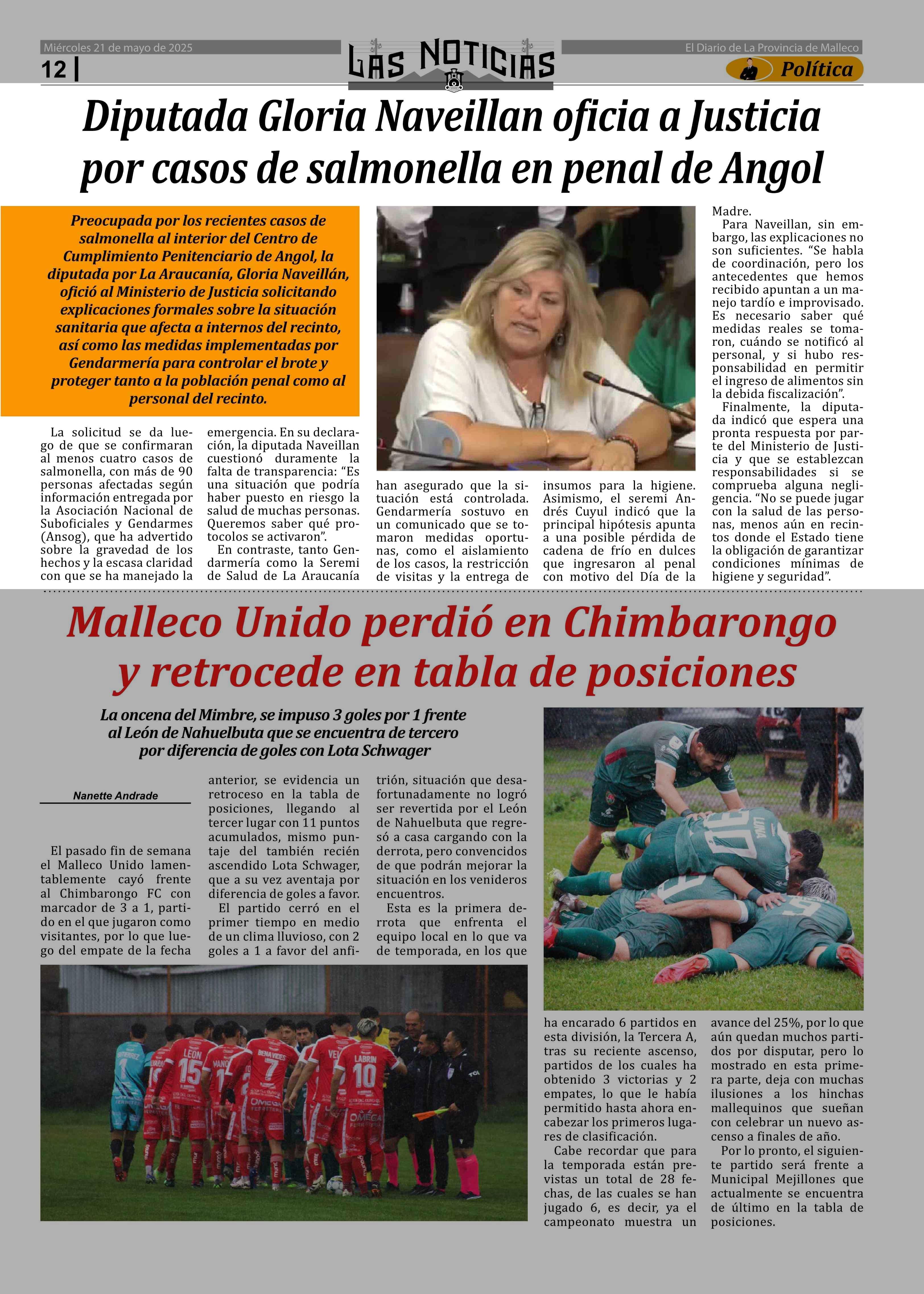 Diputada Gloria Naveillan oficia a Justicia por casos de salmonella en penal de Angol 21-05-2025 Las Noticias |