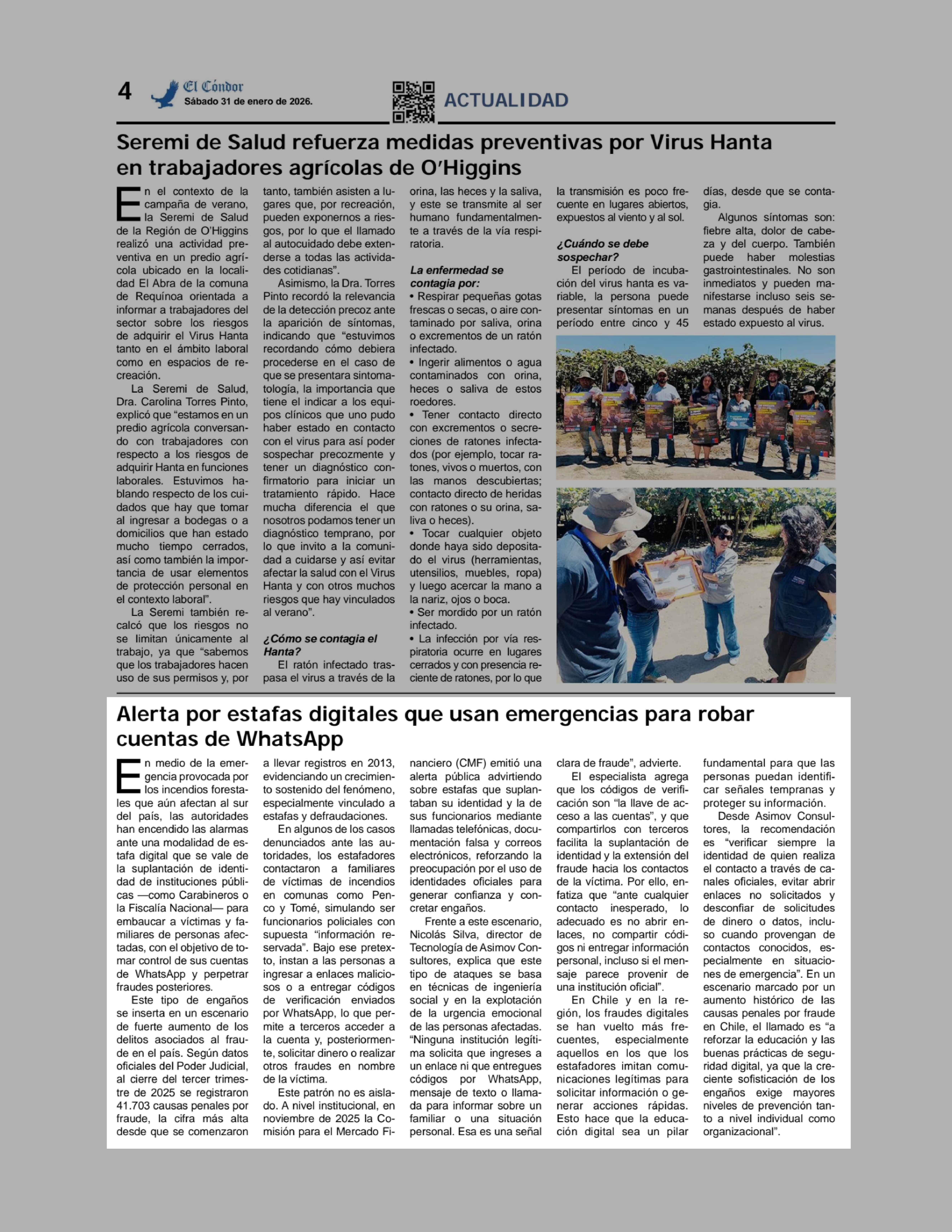 | Fecha: | 31-01-2026 | Sector: | Noticia general | Región: | Región del Libertador General Bernardo O'Higgins |
