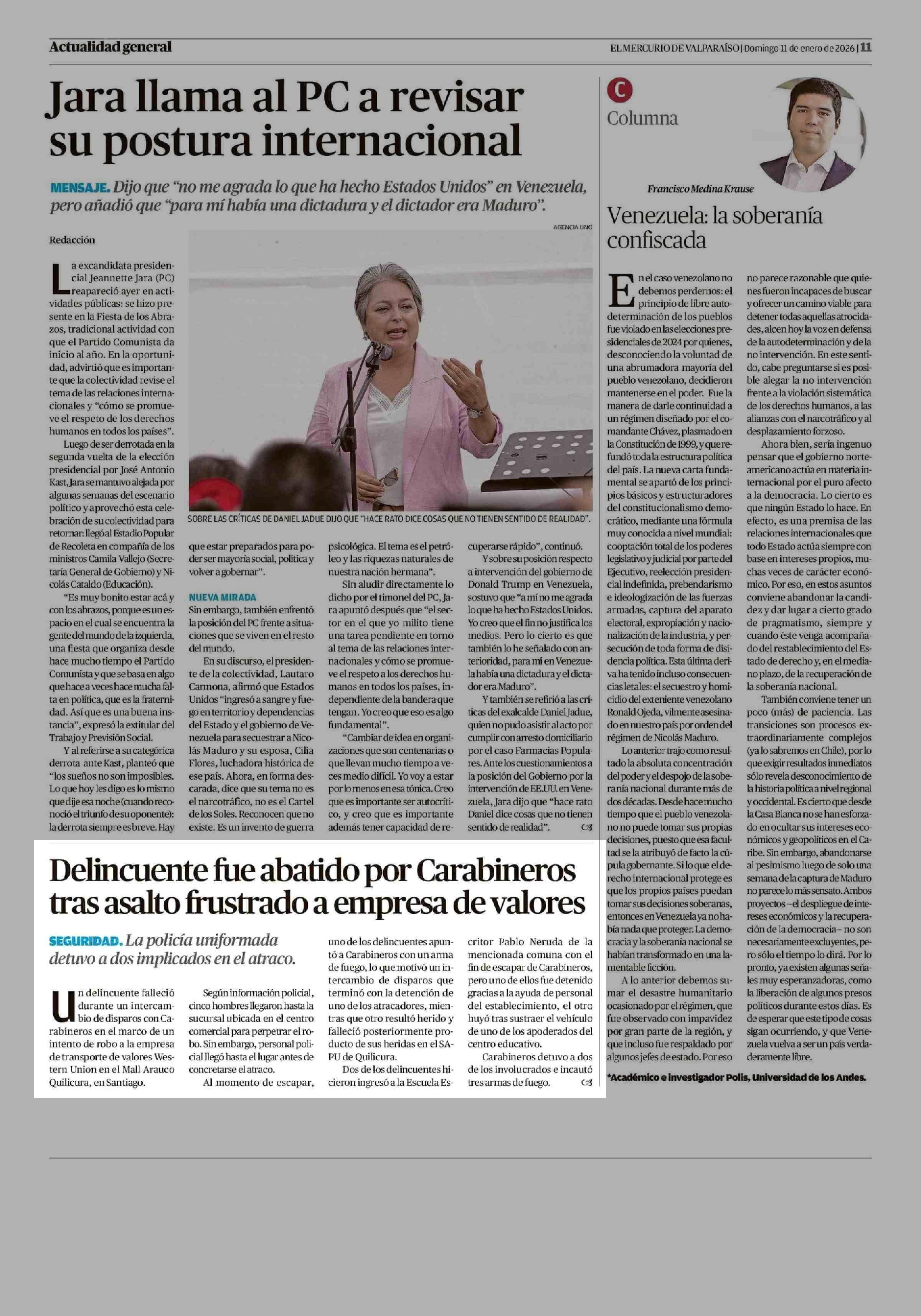 Delincuente fue abatido por Carabineros tras asalto frustrado a empresa de valores 11-01-2026 El Mercurio de Valparaíso |