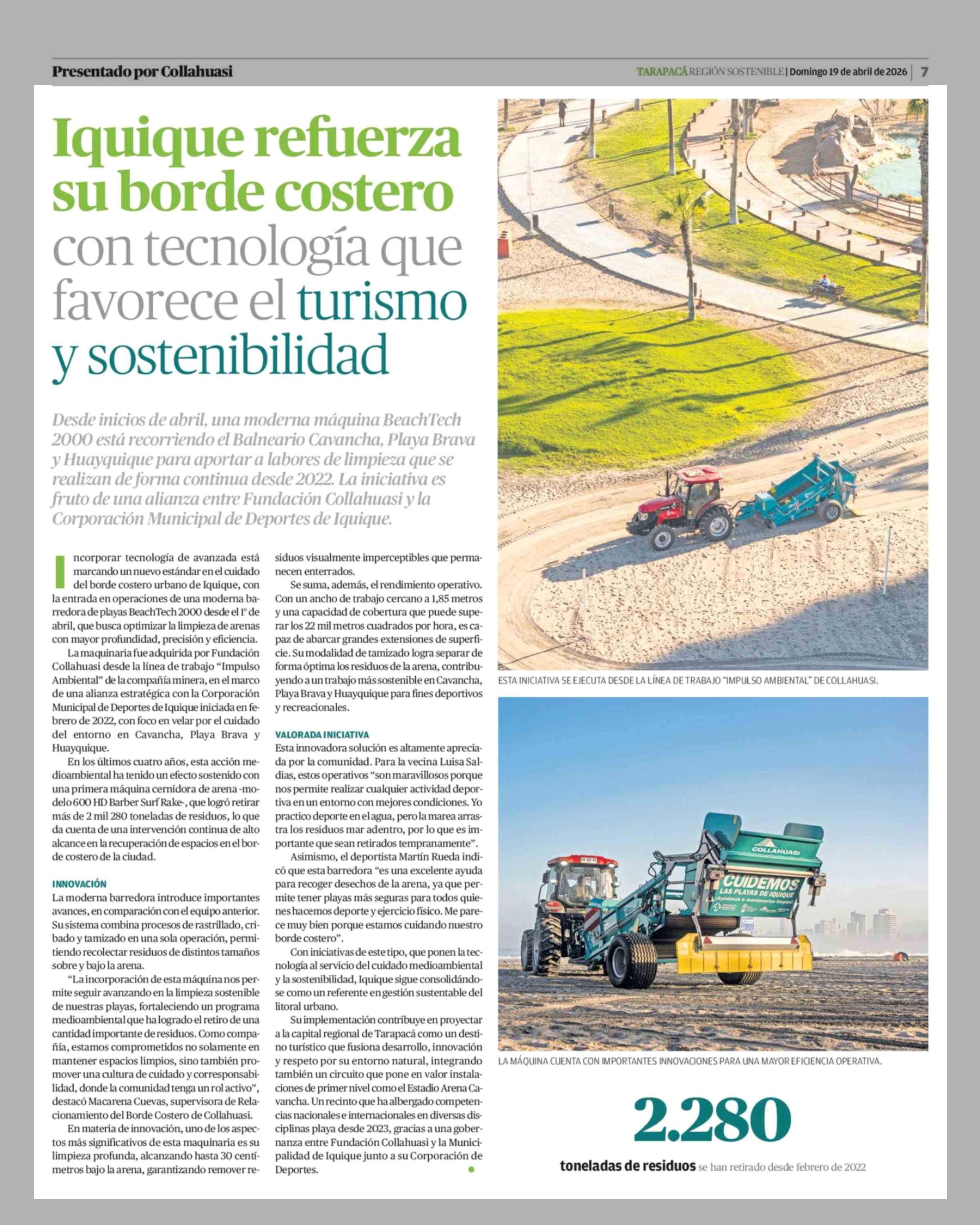 Iquique refuerza su borde costero con tecnología que favorece el turismo y sostenibilidad 19-04-2026 La Estrella de Iquique |