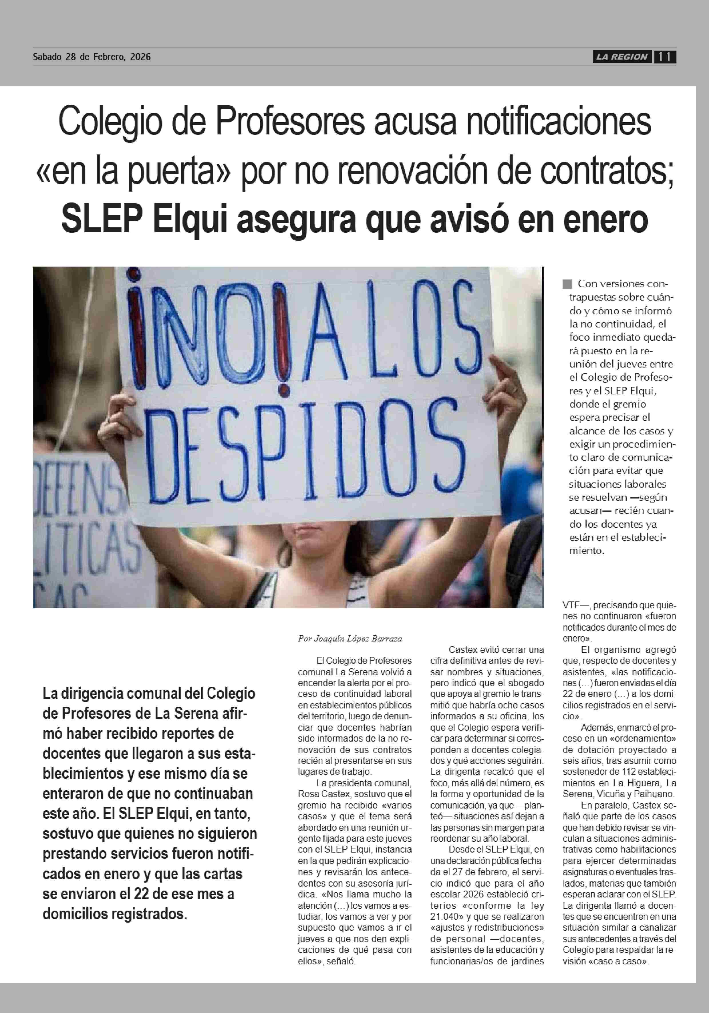 Título: Colegio de Profesores acusa notificaciones «en la puerta» por no renovación de contratos; SLEP Elqui asegura que avisó en enero