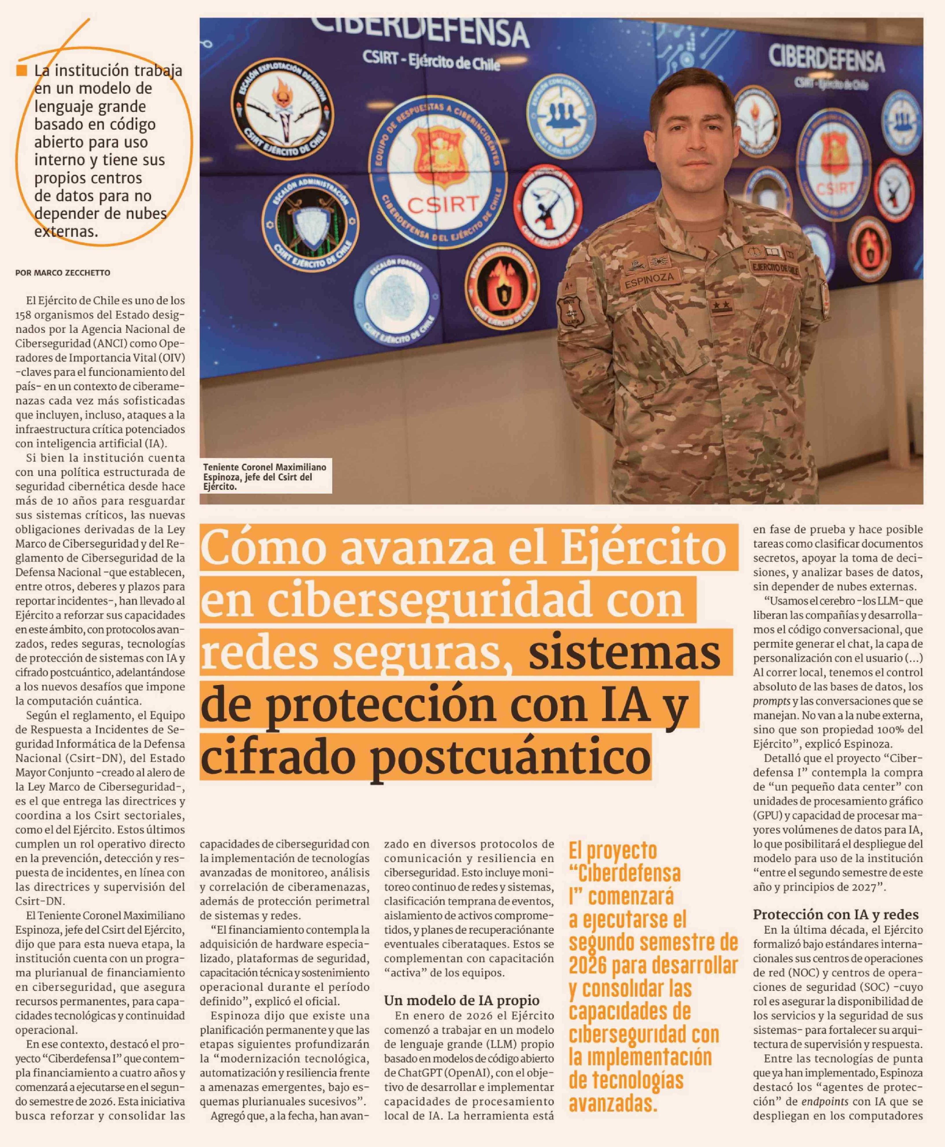 Cómo avanza el Ejército en ciberseguridad con redes seguras, sistemas de protección con IA y cifrado postcuántico 02-03-2026 Diario Financiero |