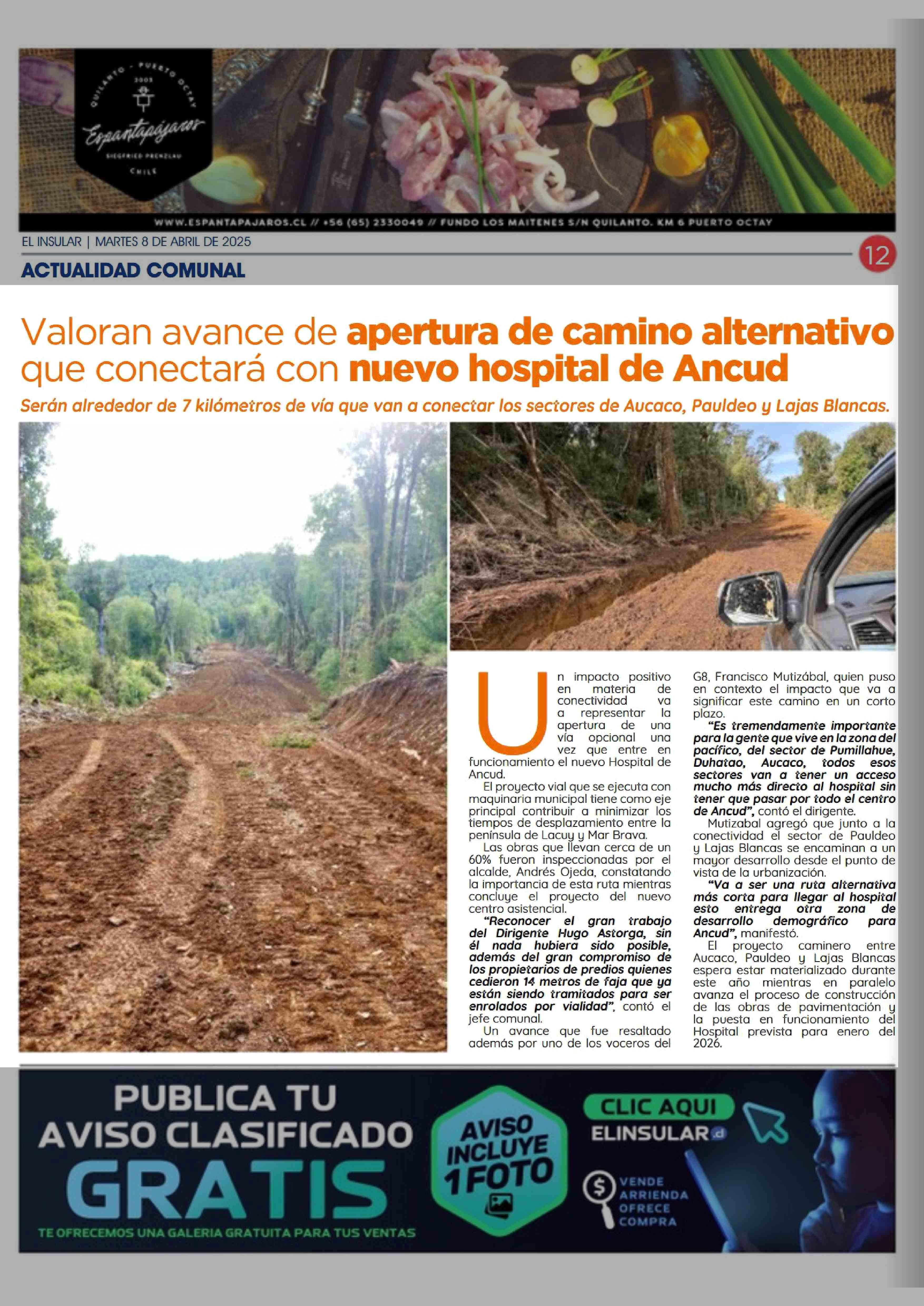 Valoran avance de apertura de camino alternativo que conectará con nuevo hospital de Ancud 08-04-2025 El Insular |