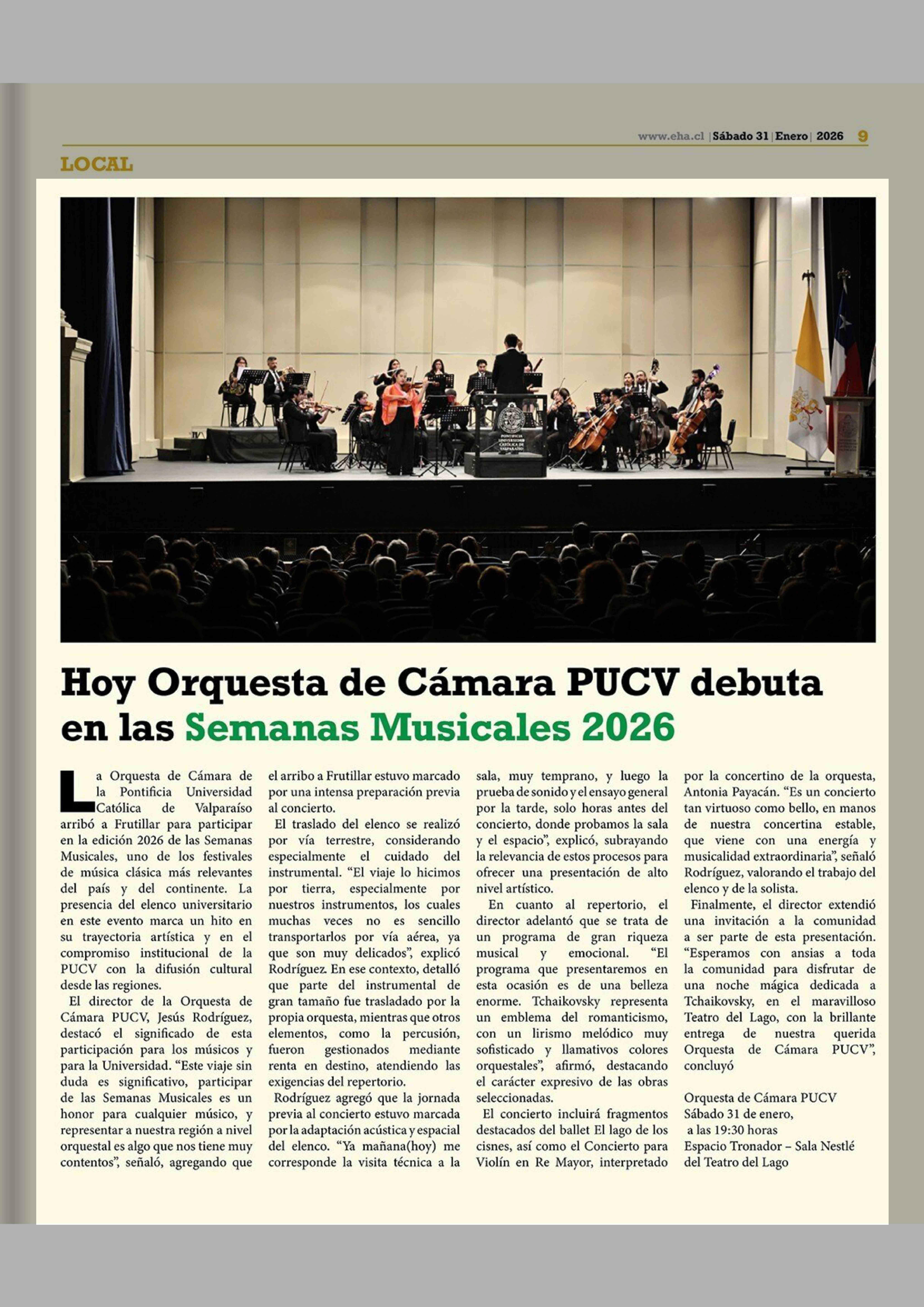 Título: Hoy Orquesta de Cámara PUCV debuta en las Semanas Musicales 2026