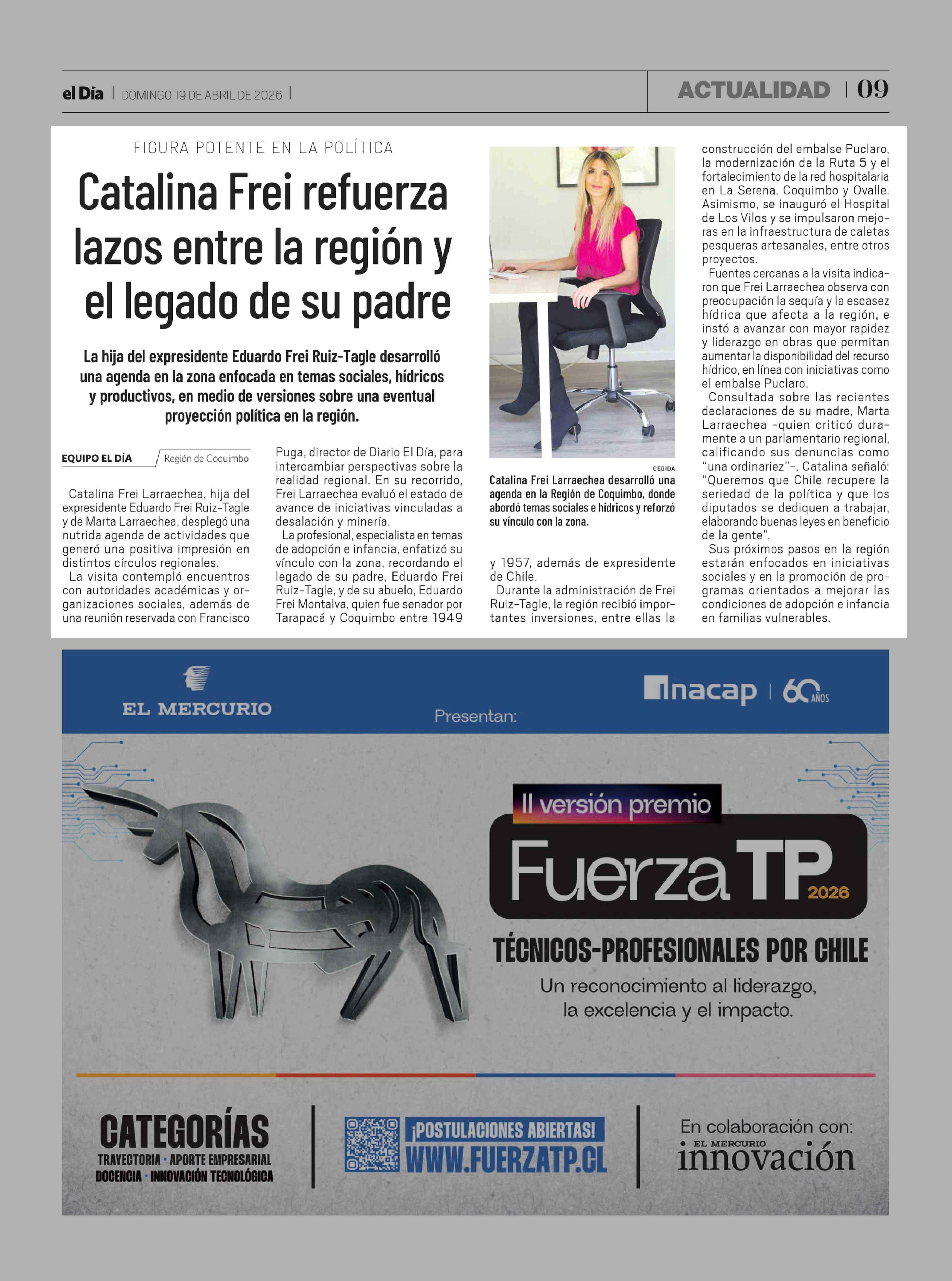 Catalina Frei refuerza lazos entre la región y el legado de su padre 19-04-2026 El Día |