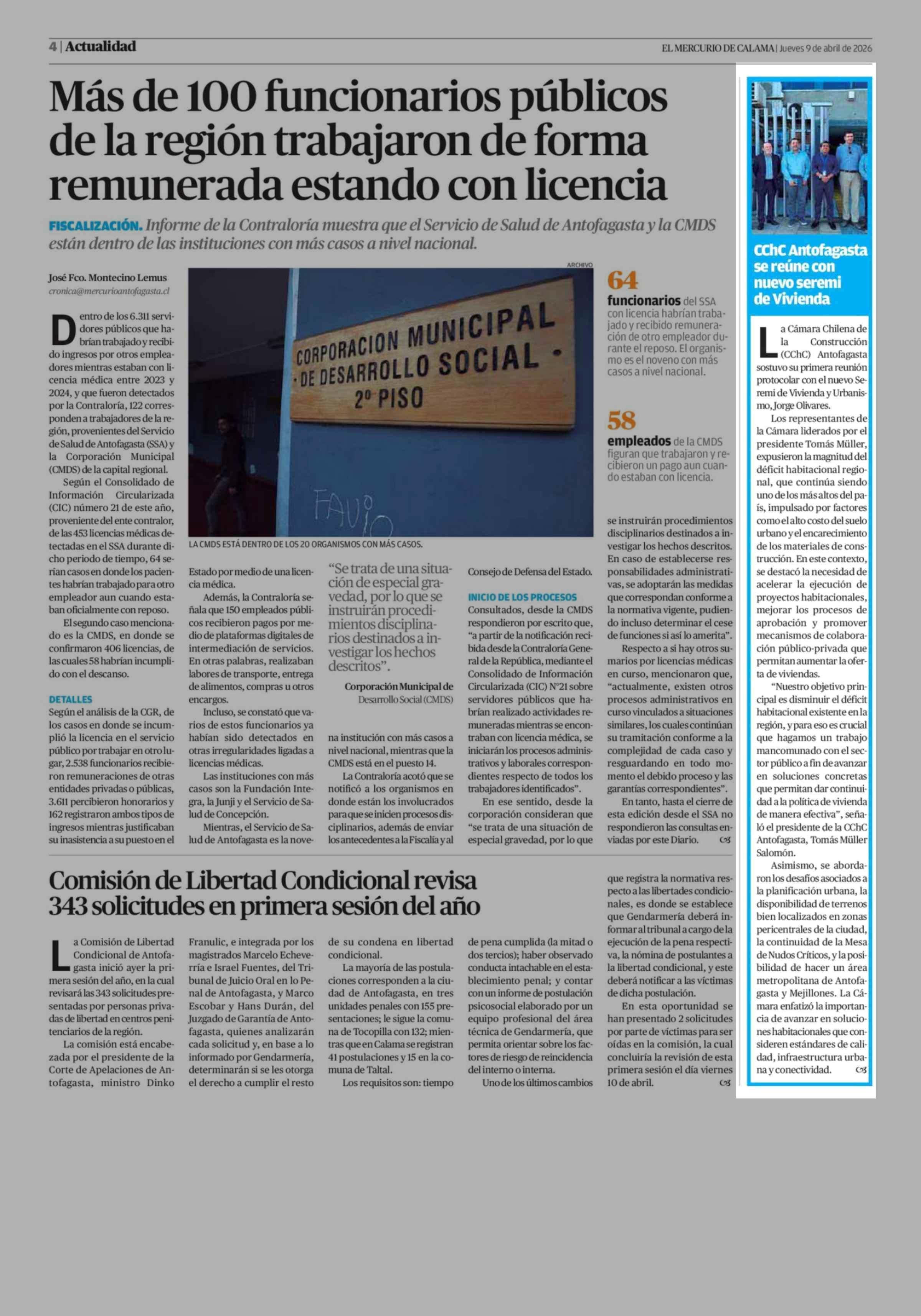 CChC Antofagasta se reúne con nuevo seremi de Vivienda 09-04-2026 El Mercurio de Calama |