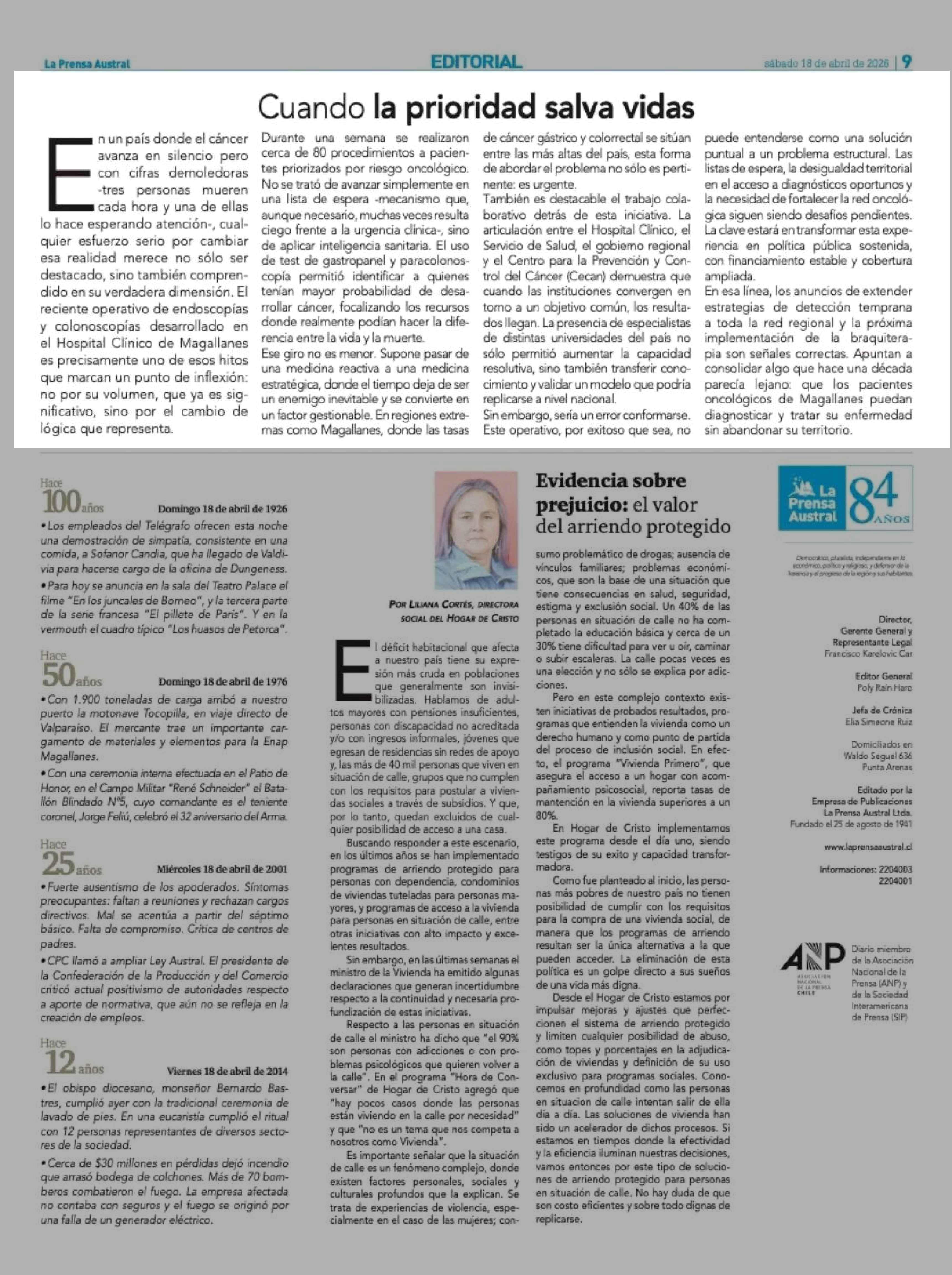 Fecha: 18-04-2026 Sector: Editorial Región: Región de Magallanes y de la Antártica Chilena