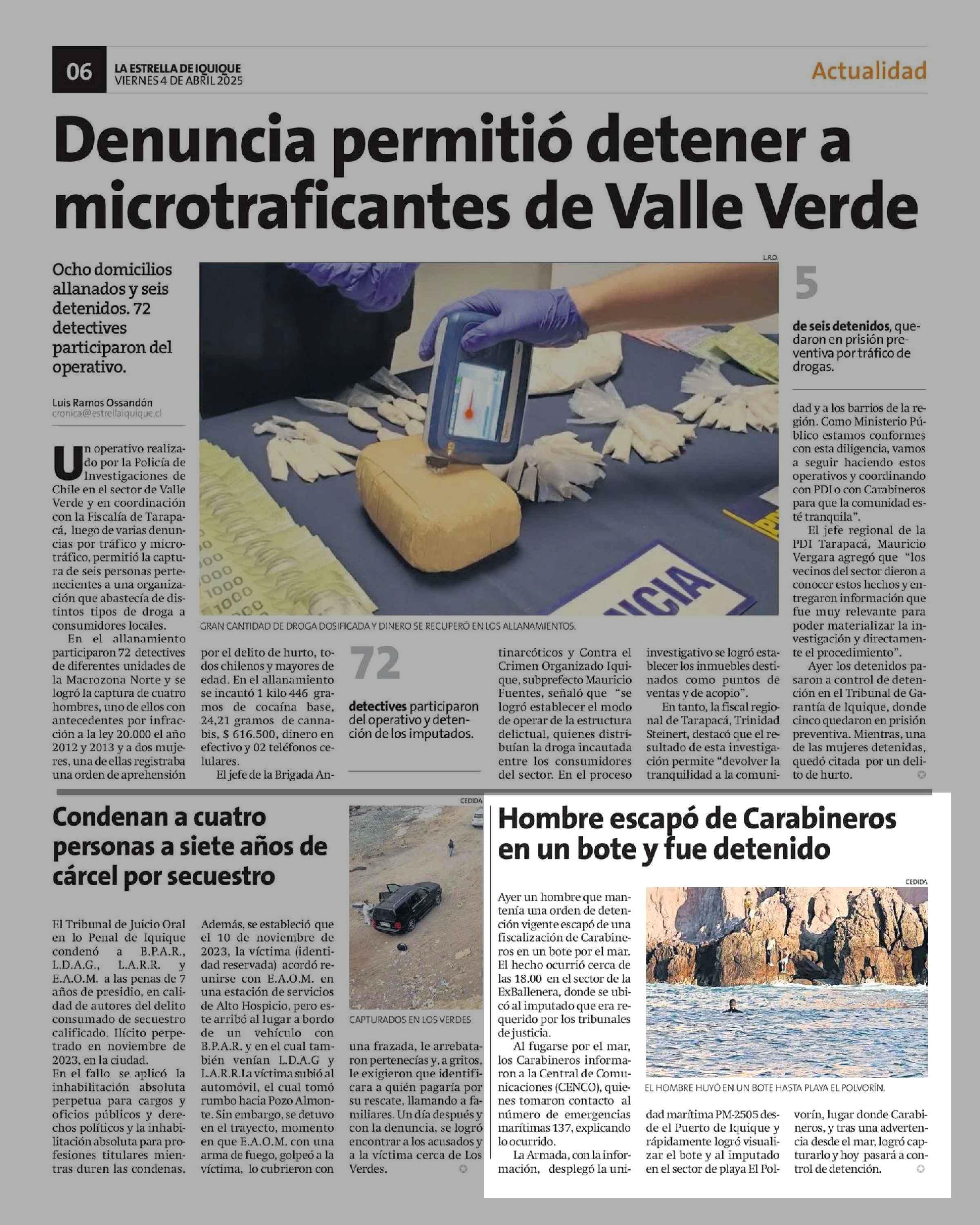 Hombre escapó de Carabineros en un bote y fue detenido 04-04-2025 La Estrella de Iquique |
