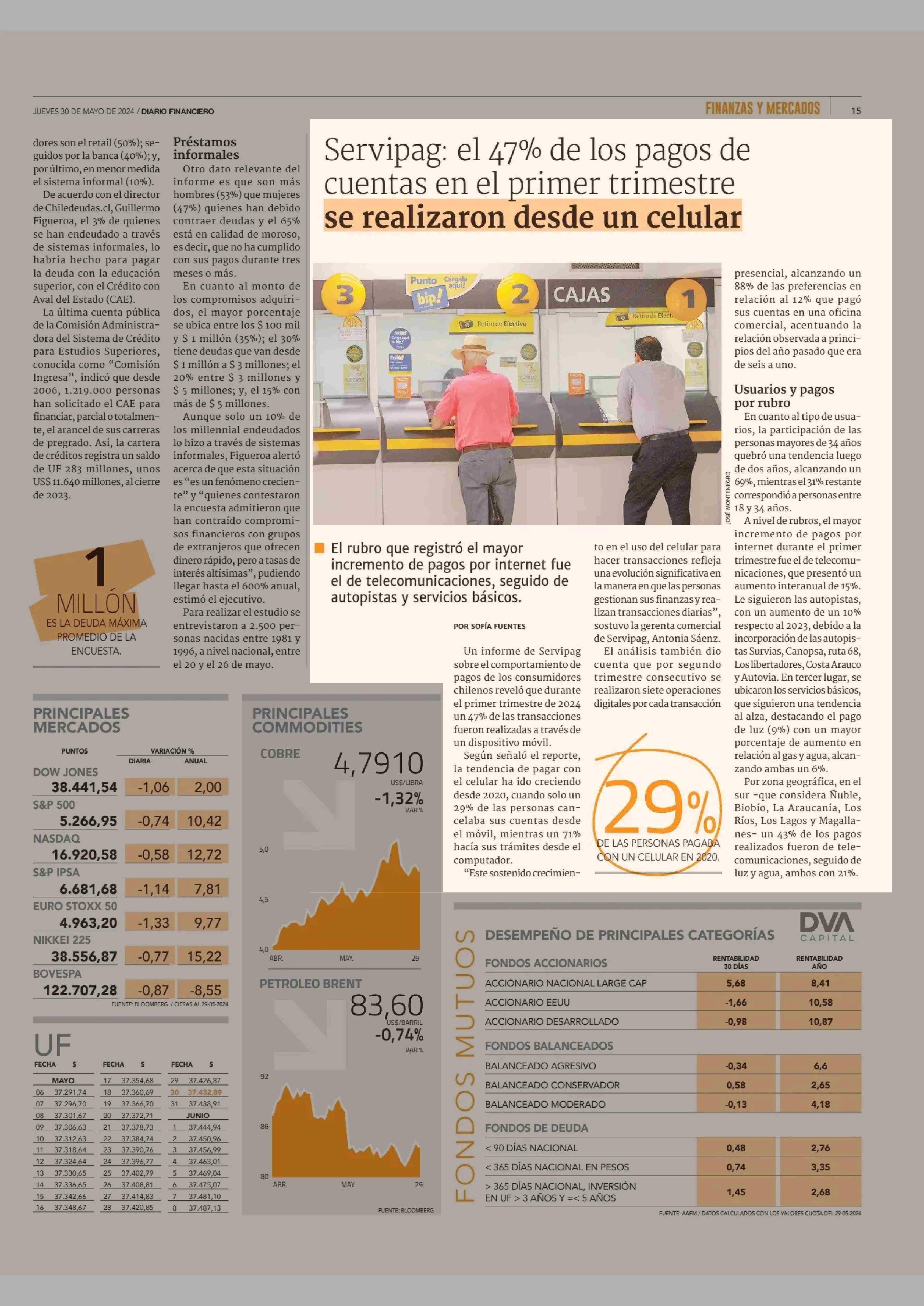 Servipag: el 47% de los pagos de cuentas en el primer trimestre se realizaron desde un celular 30-05-2024 Diario Financiero |
