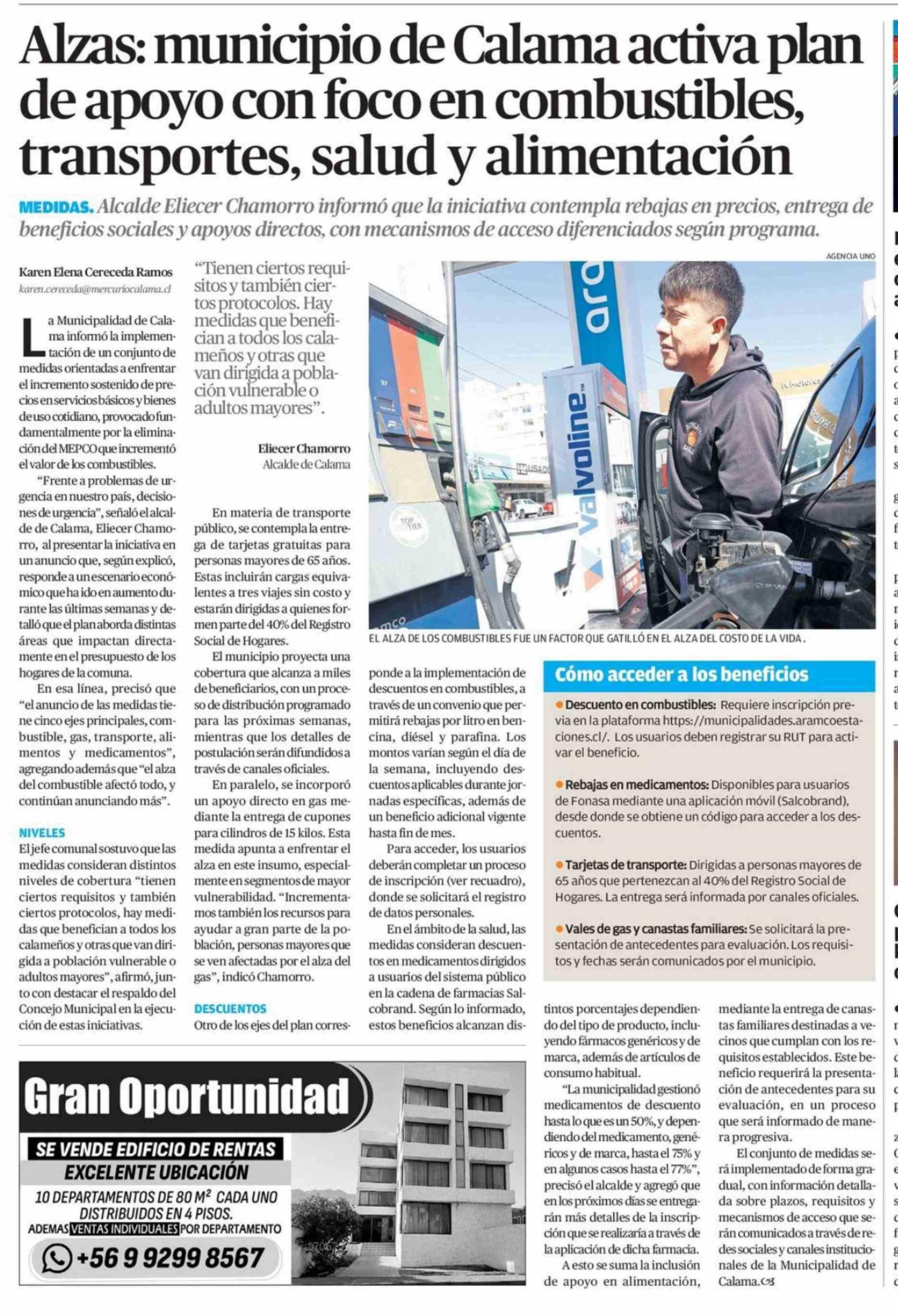 Alzas: municipio de Calama activa plan de apoyo con foco en combustibles, transportes, salud y alimentación 15-04-2026 El Mercurio de Antofagasta |