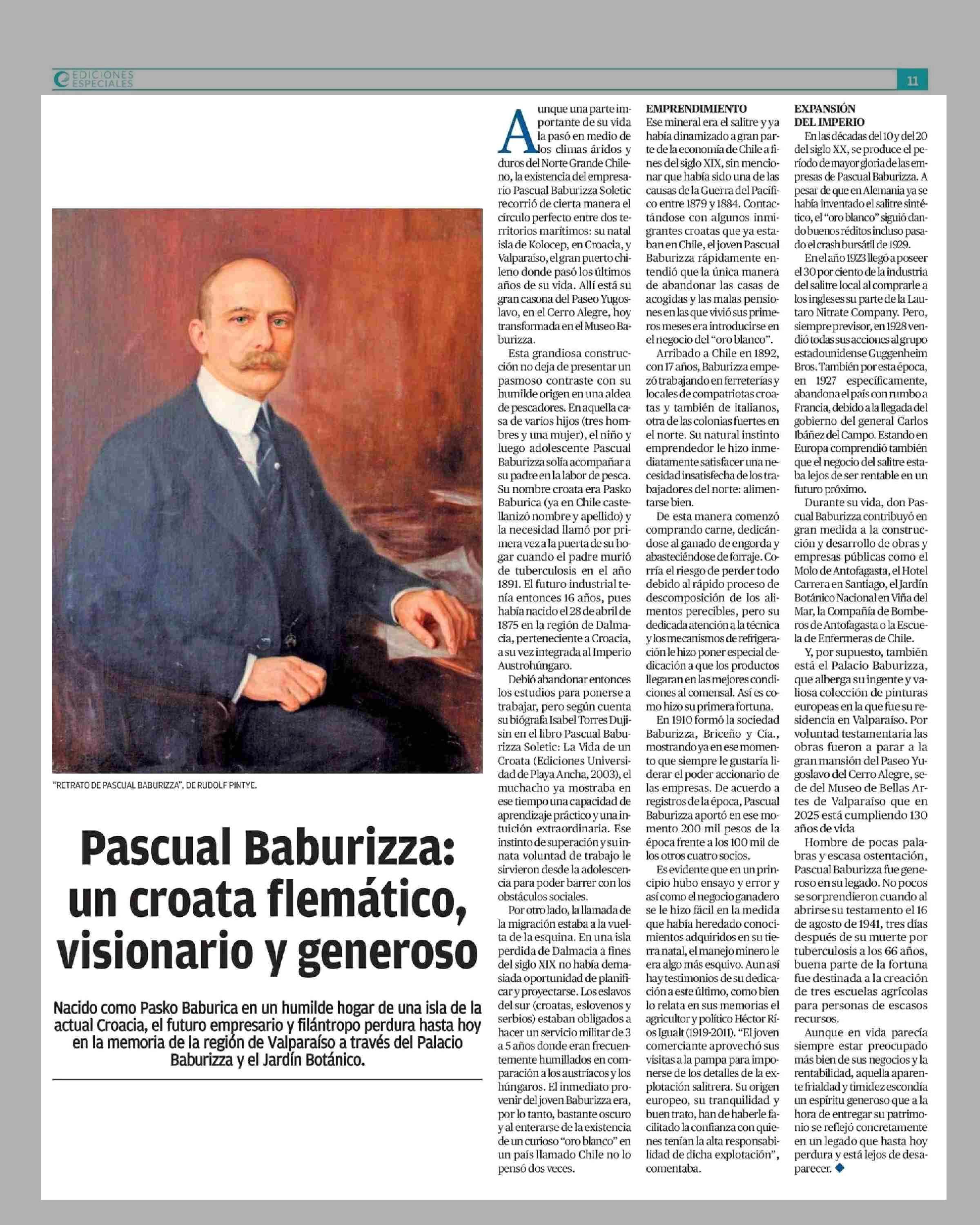 Pascual Baburizza: un croata flemático, visionario y generoso 27-04-2025 El Mercurio de Valparaíso |