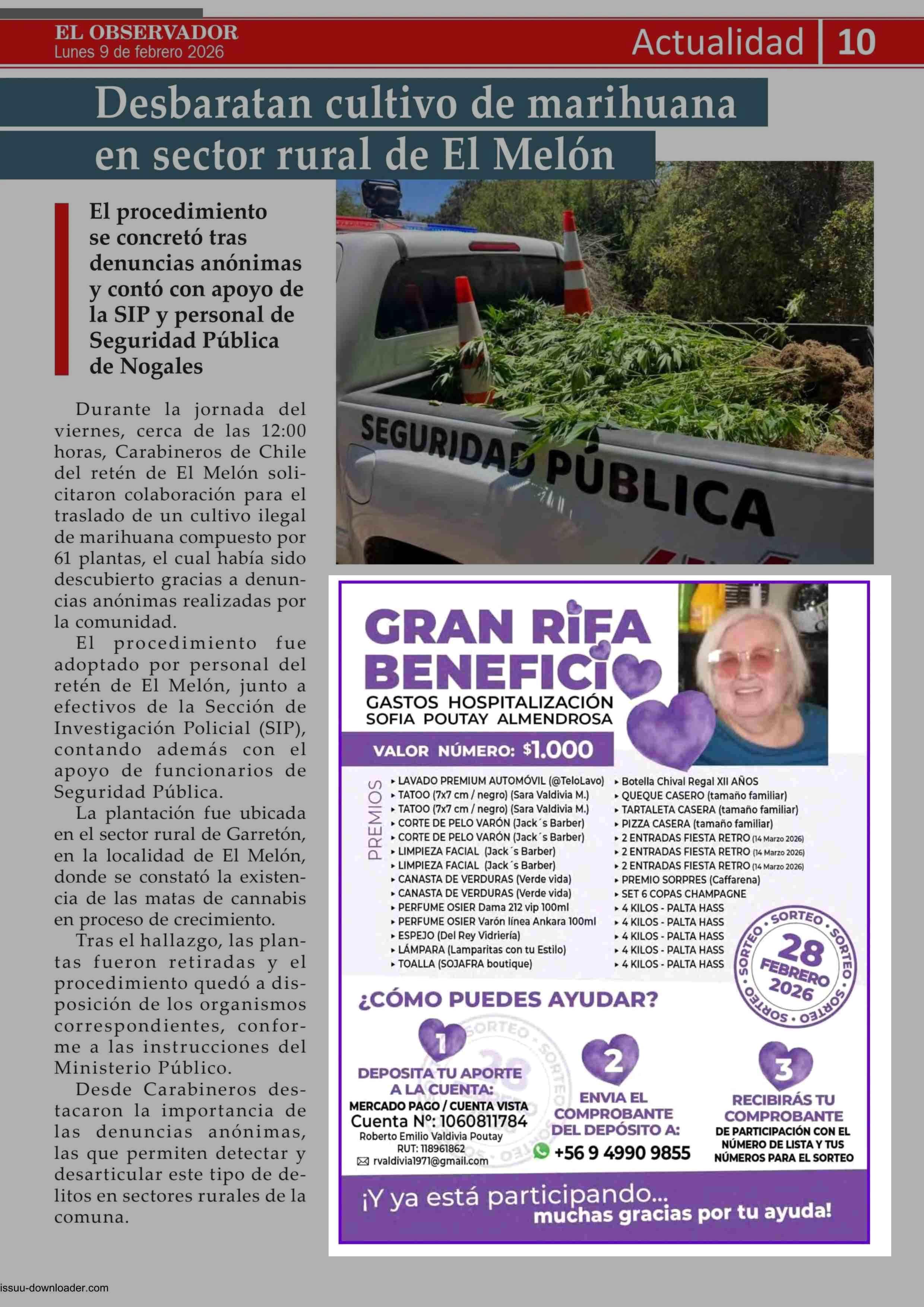 AVISO AYUDA SOCIAL: GRAN RIFA BENÉFICA 09-02-2026 El Observador Vespertino |