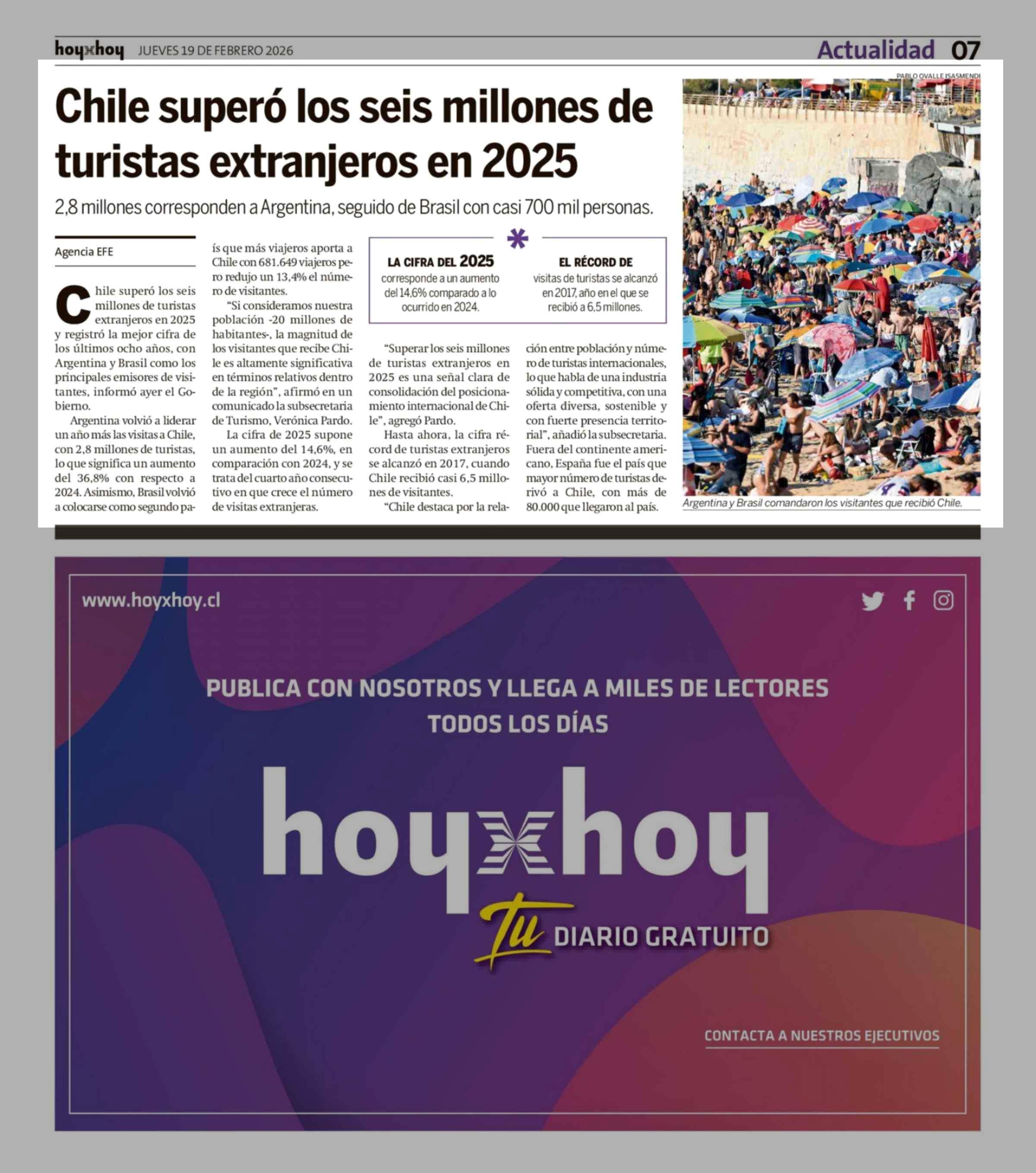Título: Chile superó los seis millones de turistas extranjeros en 2025