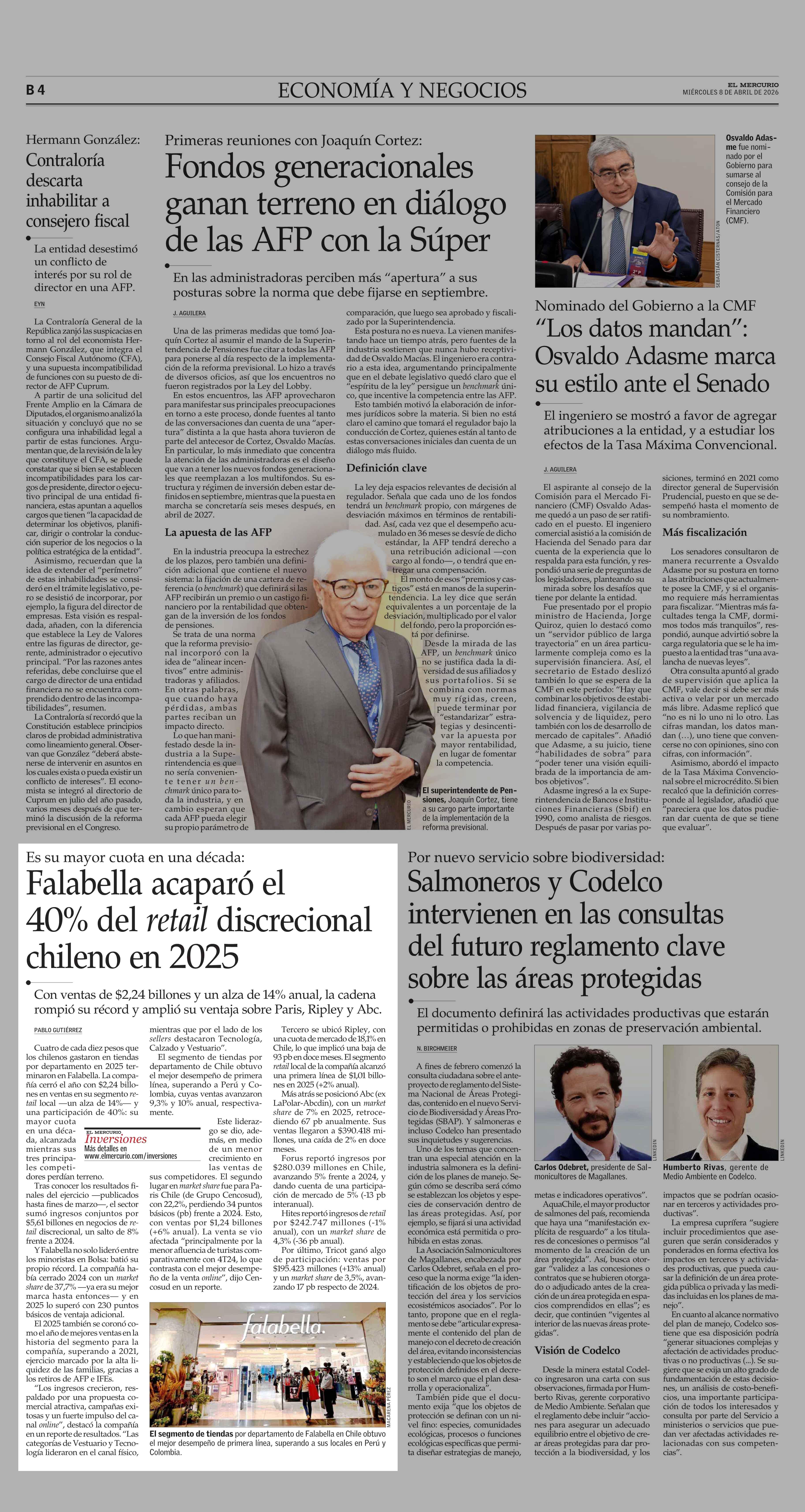 Falabella acaparó el 40% del retail discrecional chileno en 2025 08-04-2026 El Mercurio |