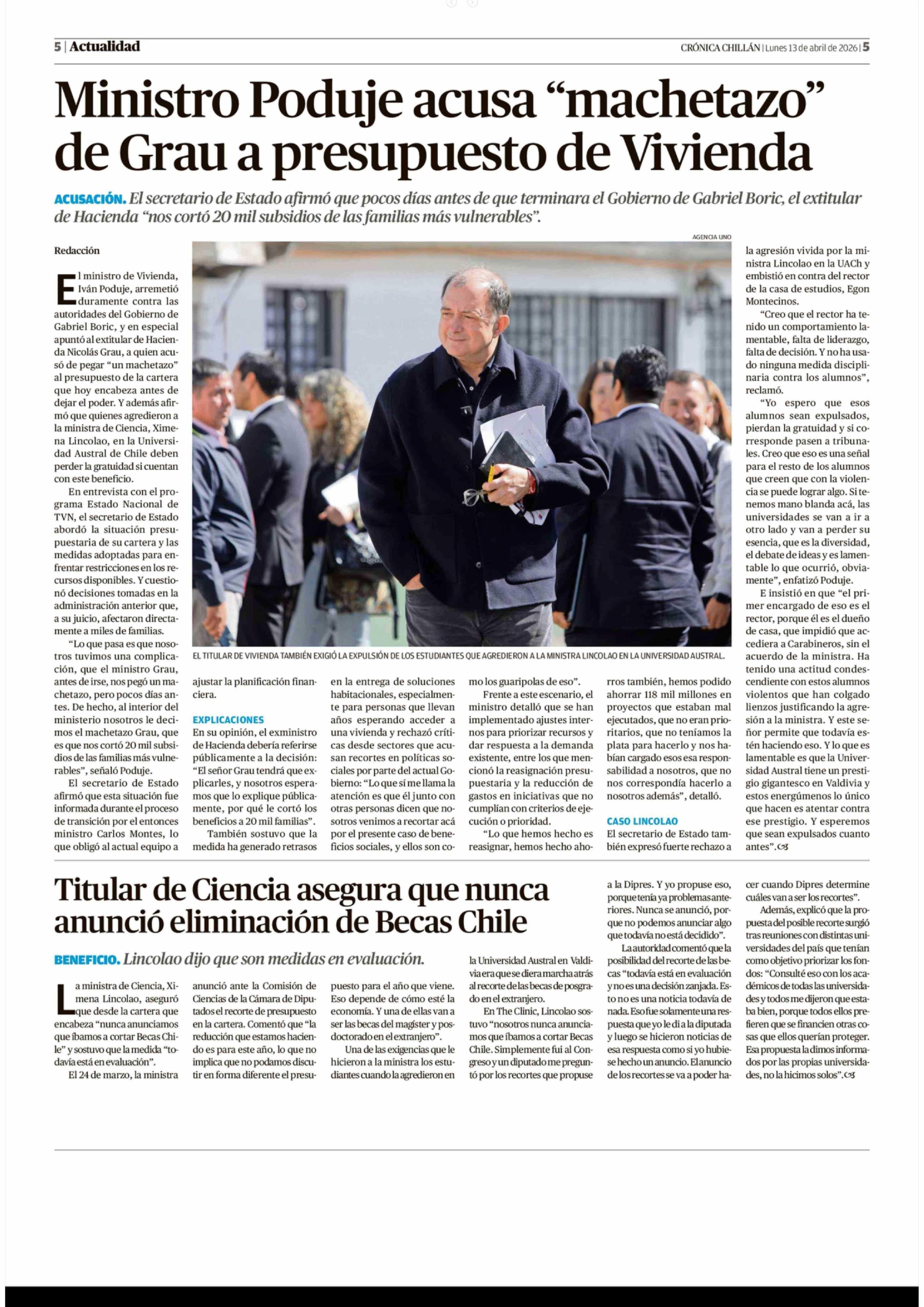 Fecha: 13-04-2026 Sector: Noticia general Región: Región del Ñuble