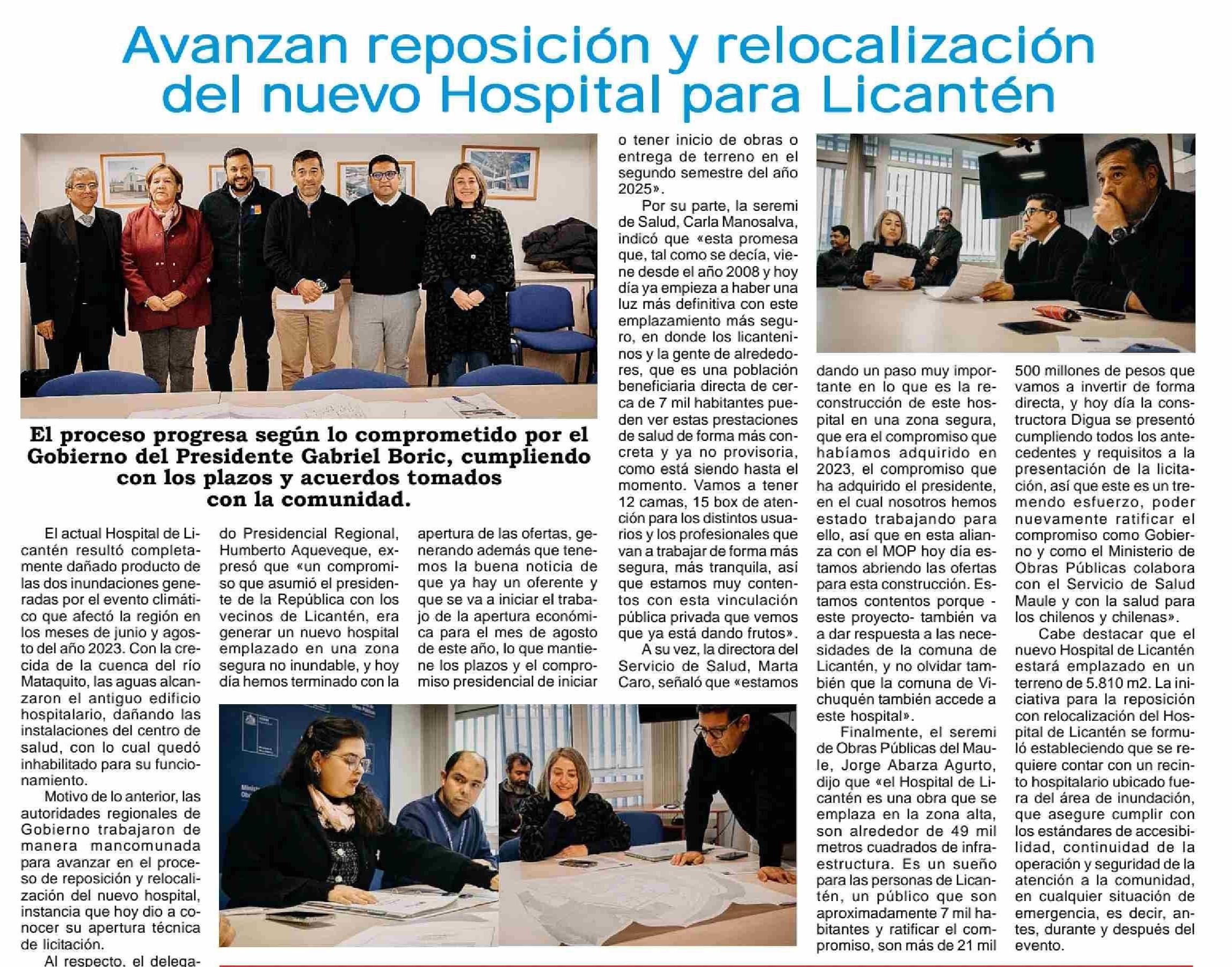 Avanzan reposición y relocalización del nuevo Hospital para Licantén 15-05-2025 Maule Hoy |