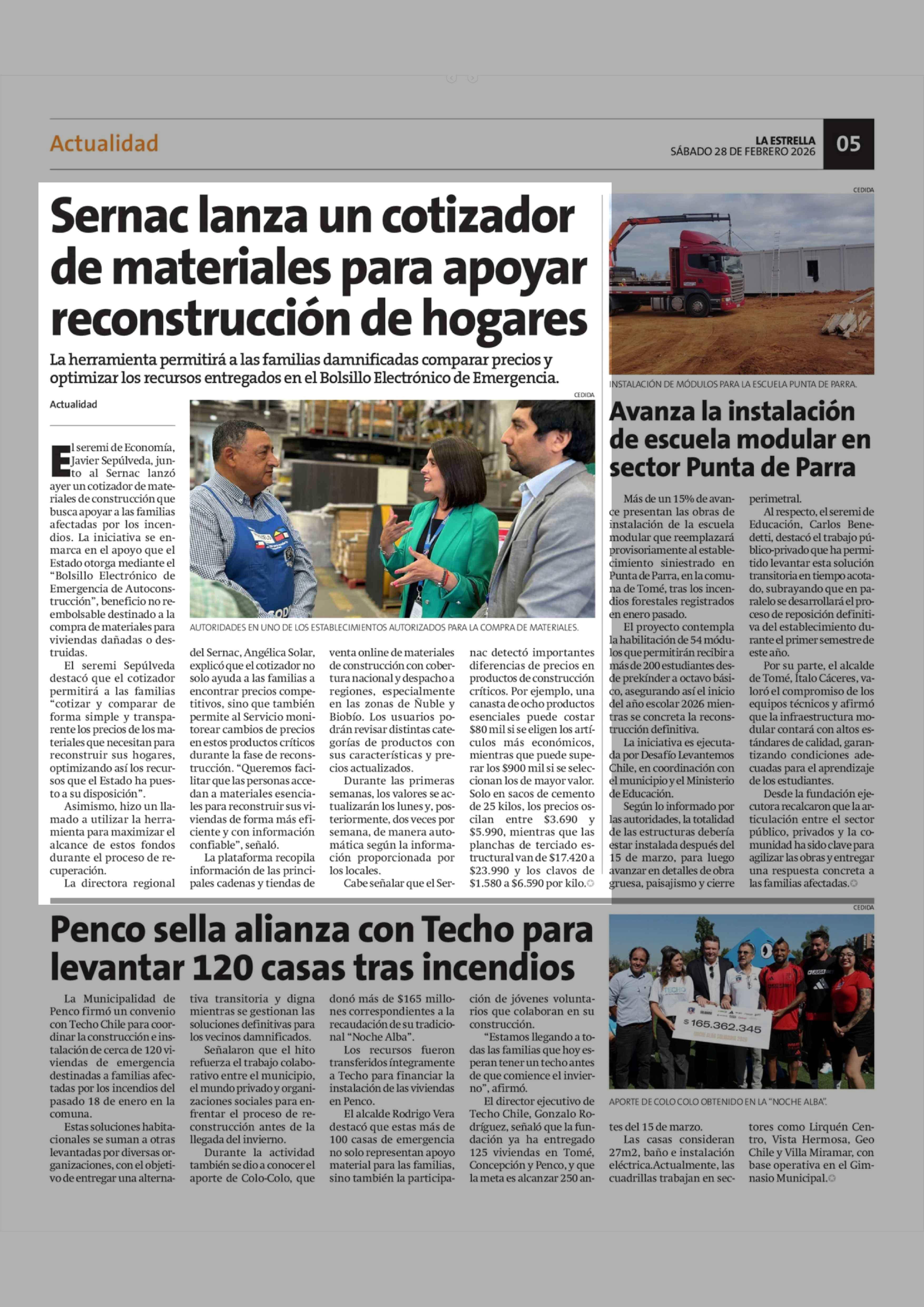 Título: Sernac lanza un cotizador de materiales para apoyar reconstrucción de hogares