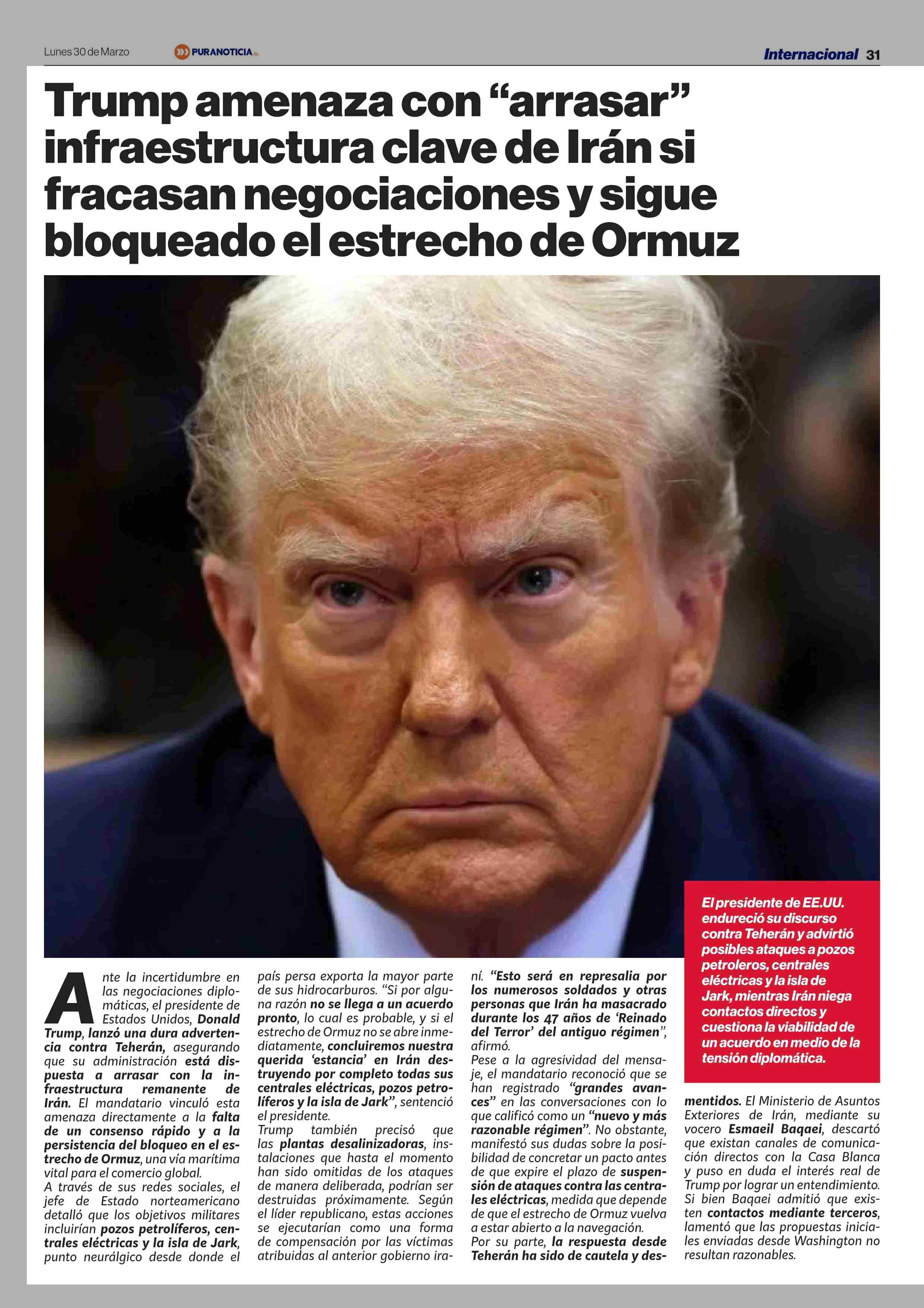 Título: Trump amenaza con “arrasar” infraestructura clave de Irán si fracasan negociaciones y sigue bloqueado el estrecho de Ormuz
