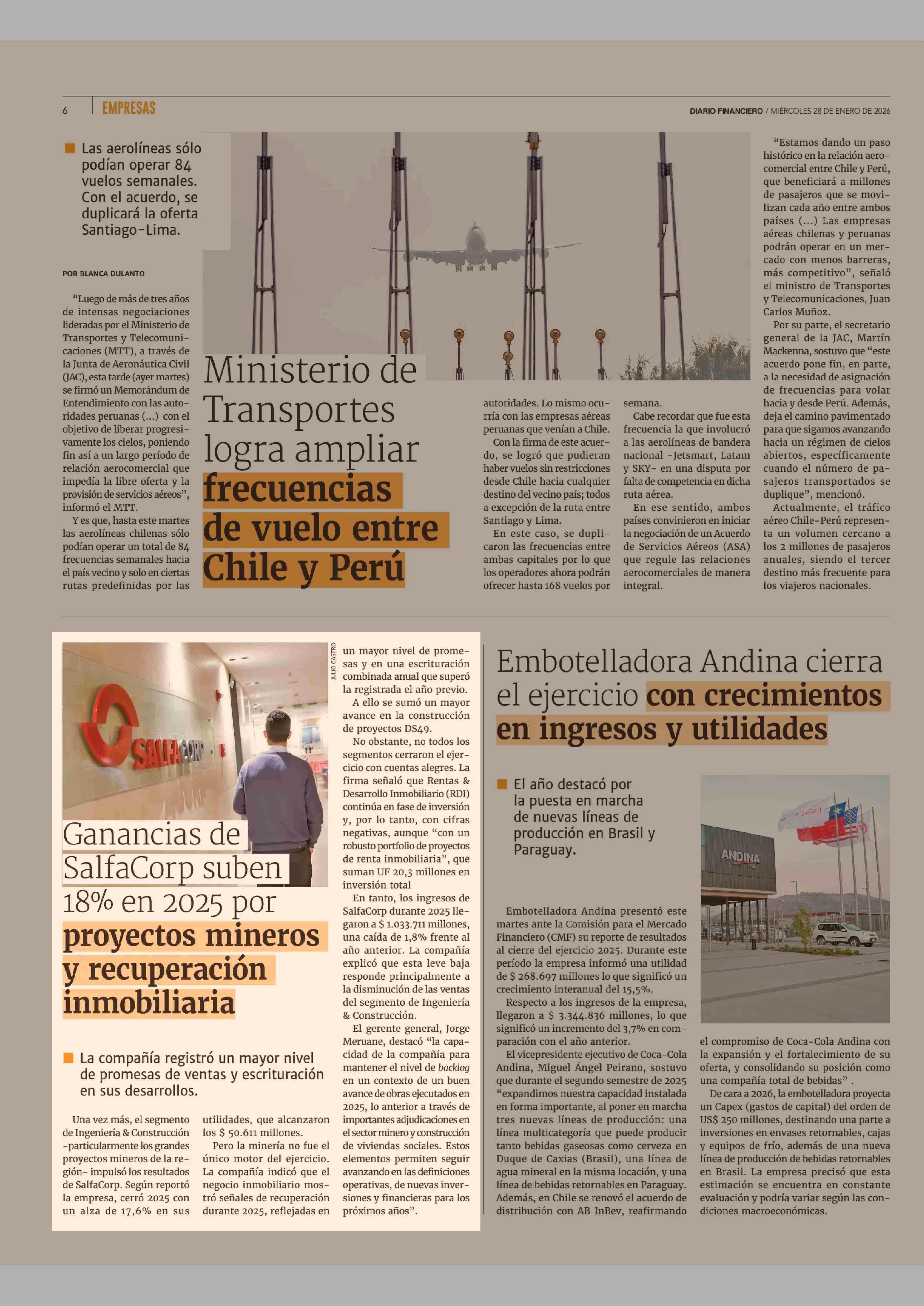 Ganancias de SalfaCorp suben 18% en 2025 por proyectos mineros y recuperación inmobiliaria 28-01-2026 Diario Financiero |