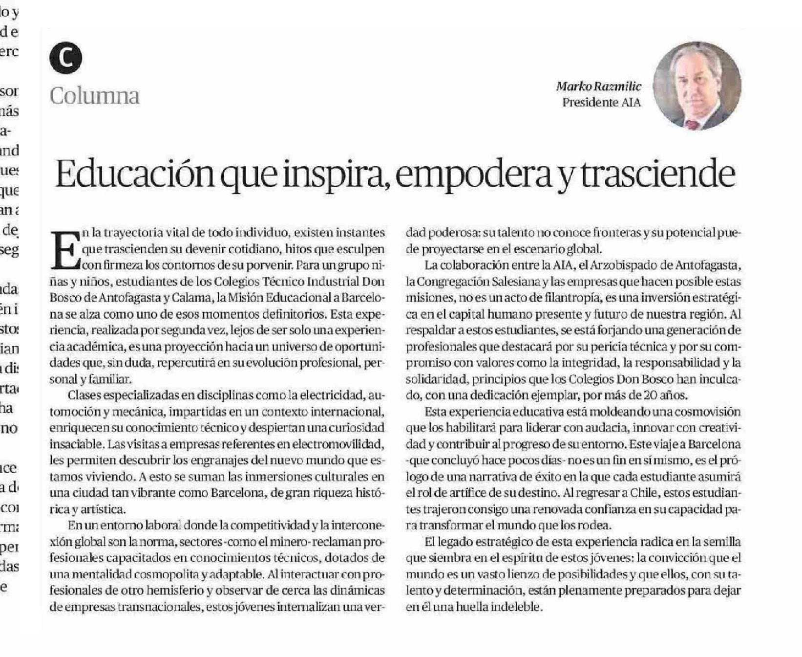 Educación que inspira, empodera y trasciende 01-06-2025 El Mercurio de Calama |