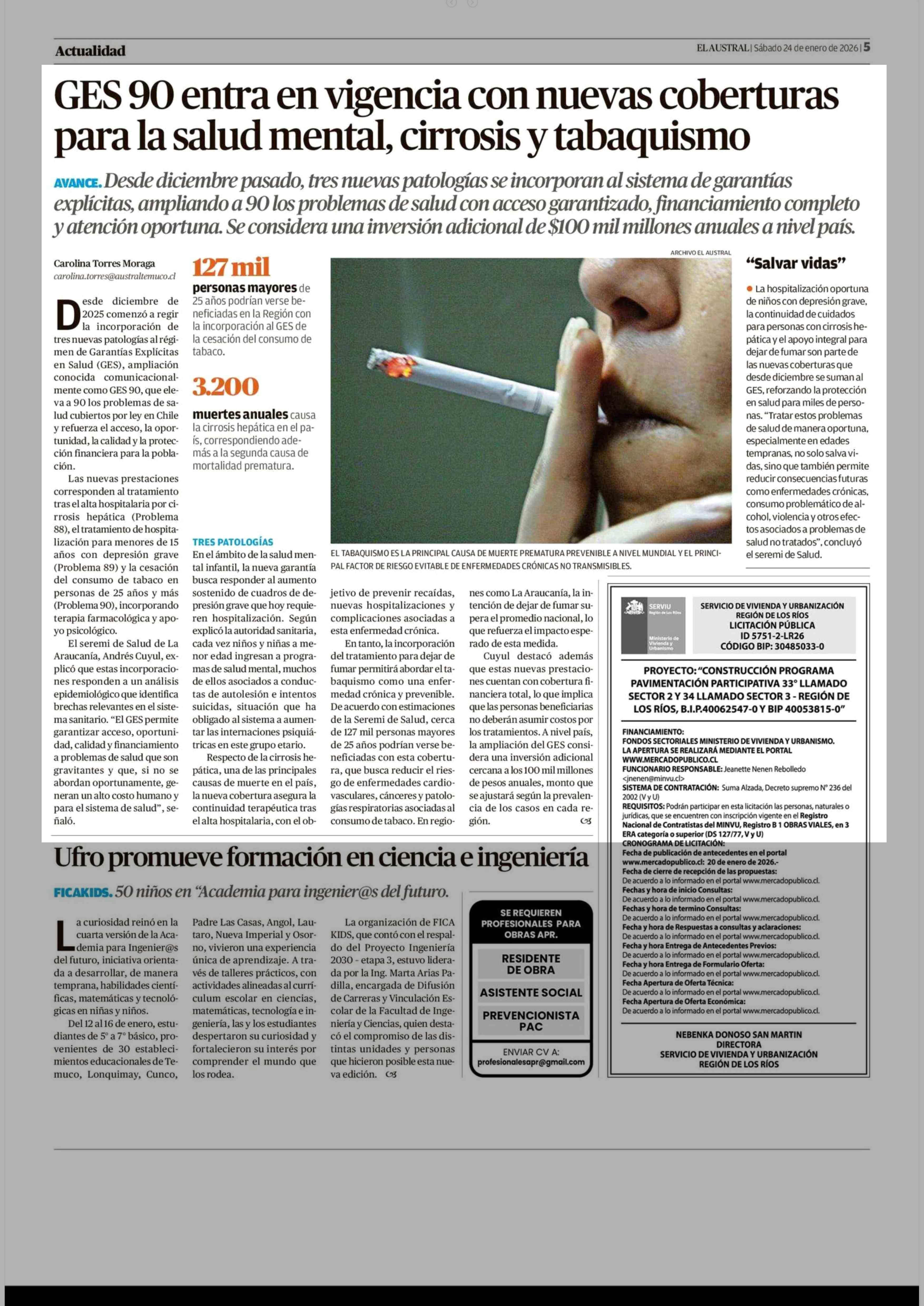 Fecha: 24-01-2026 Sector: Noticia general Región: Región de la Araucanía