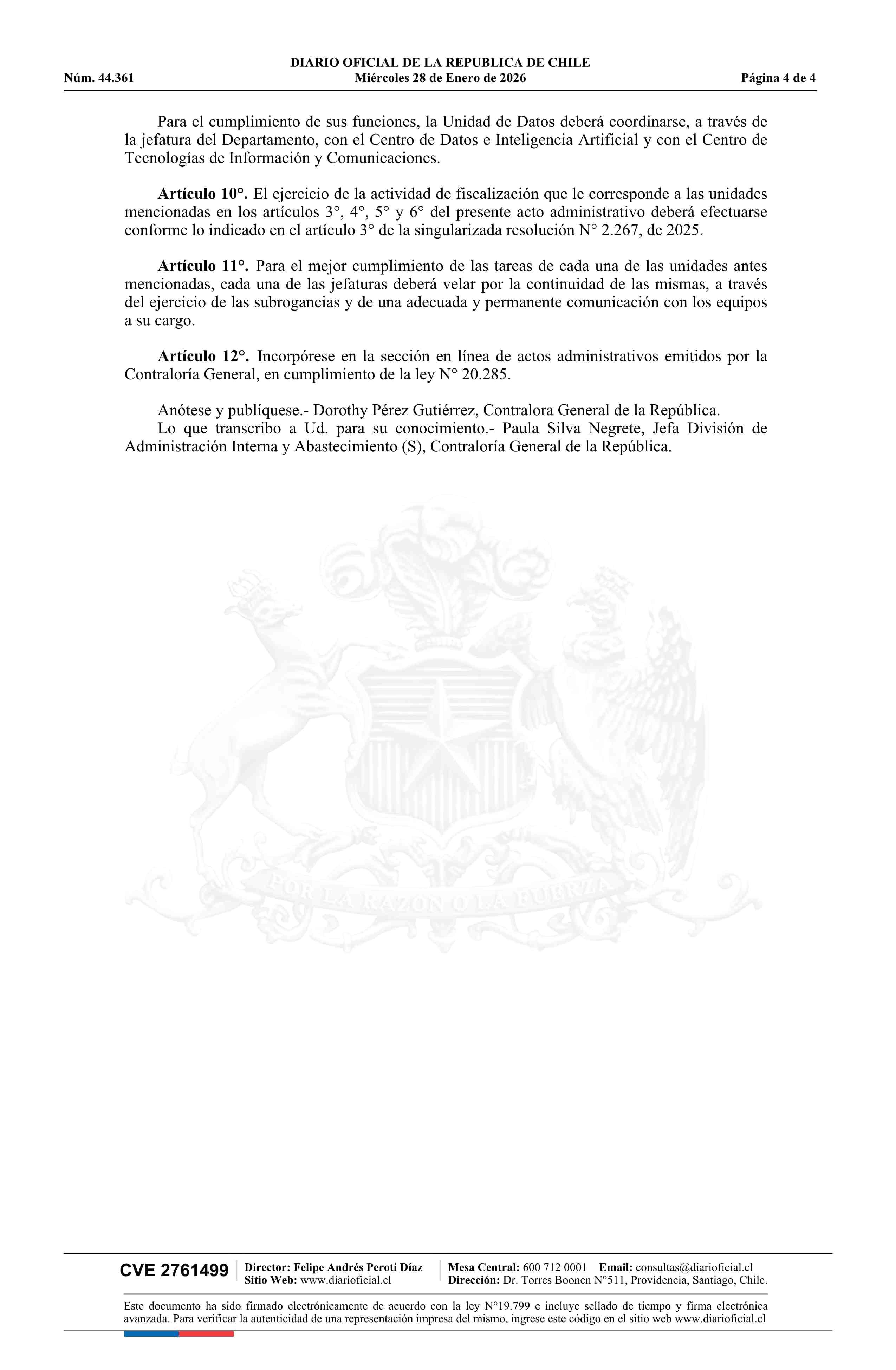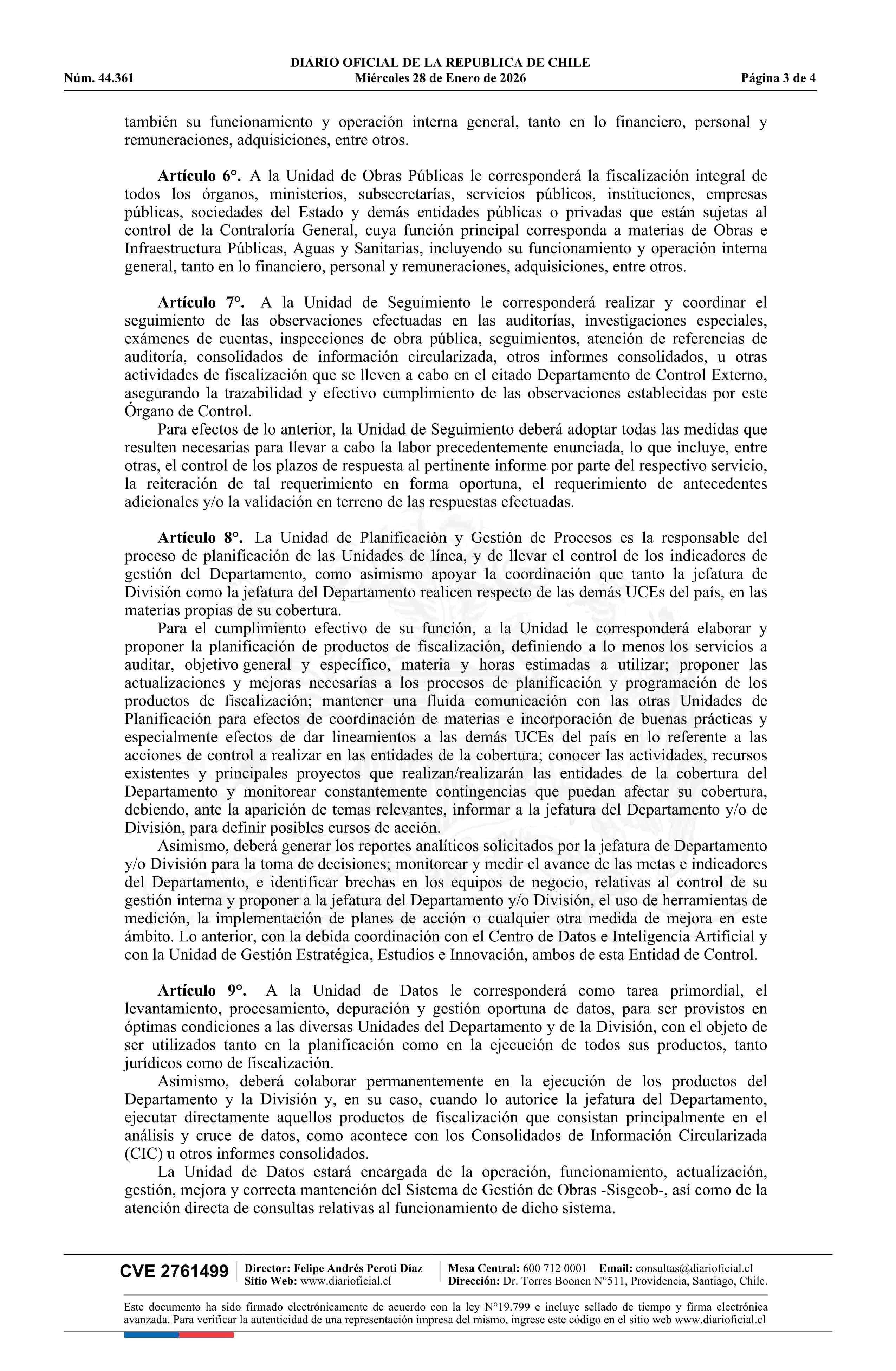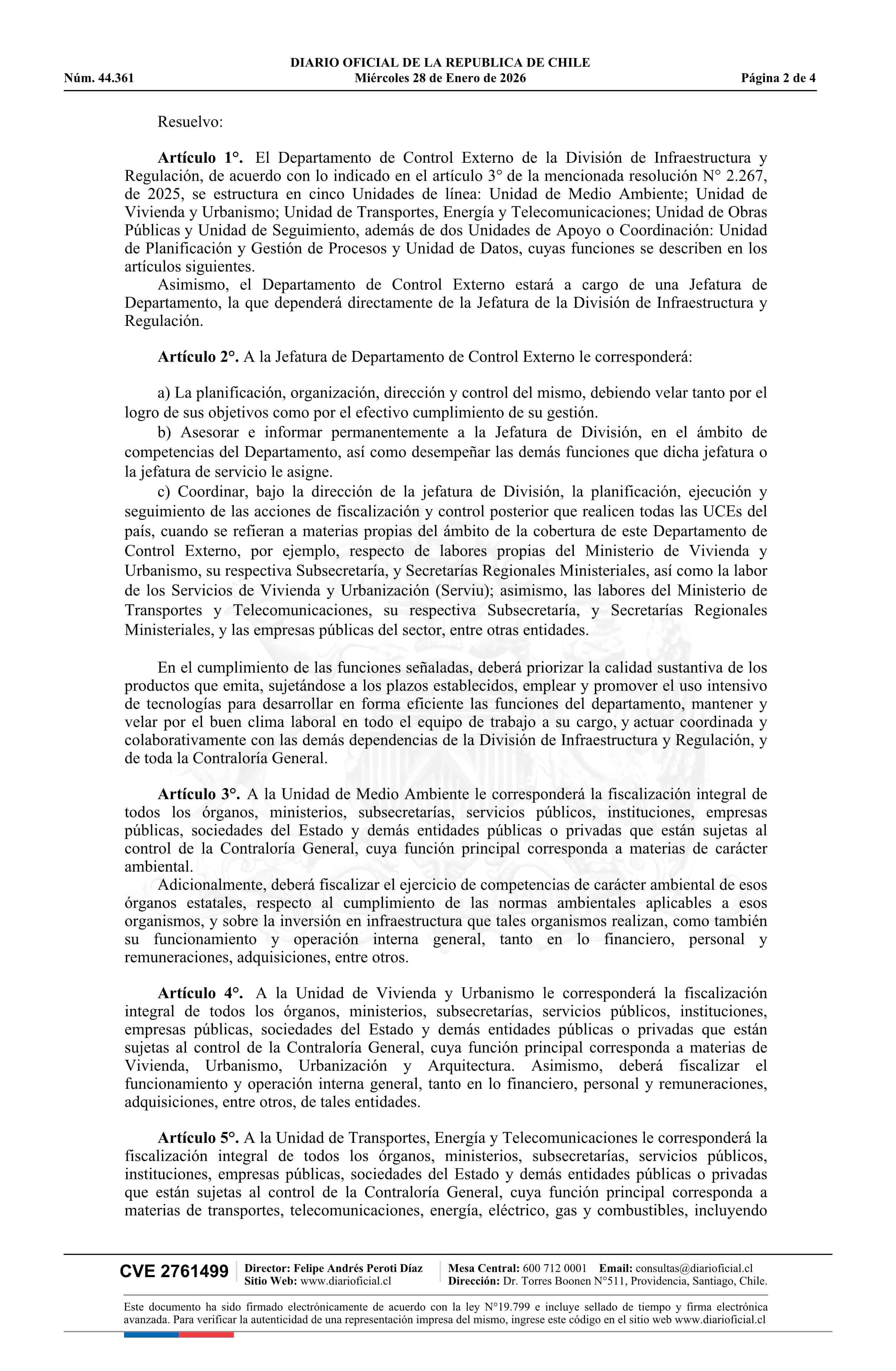 Título: Resolución exenta número 279, de 2026.- Complementa resolución N° 2.267 exenta, de 2025, de este origen, que modificó la estructura y funciones de la División de Infraestructura y Regulación de la Contraloría General de la República