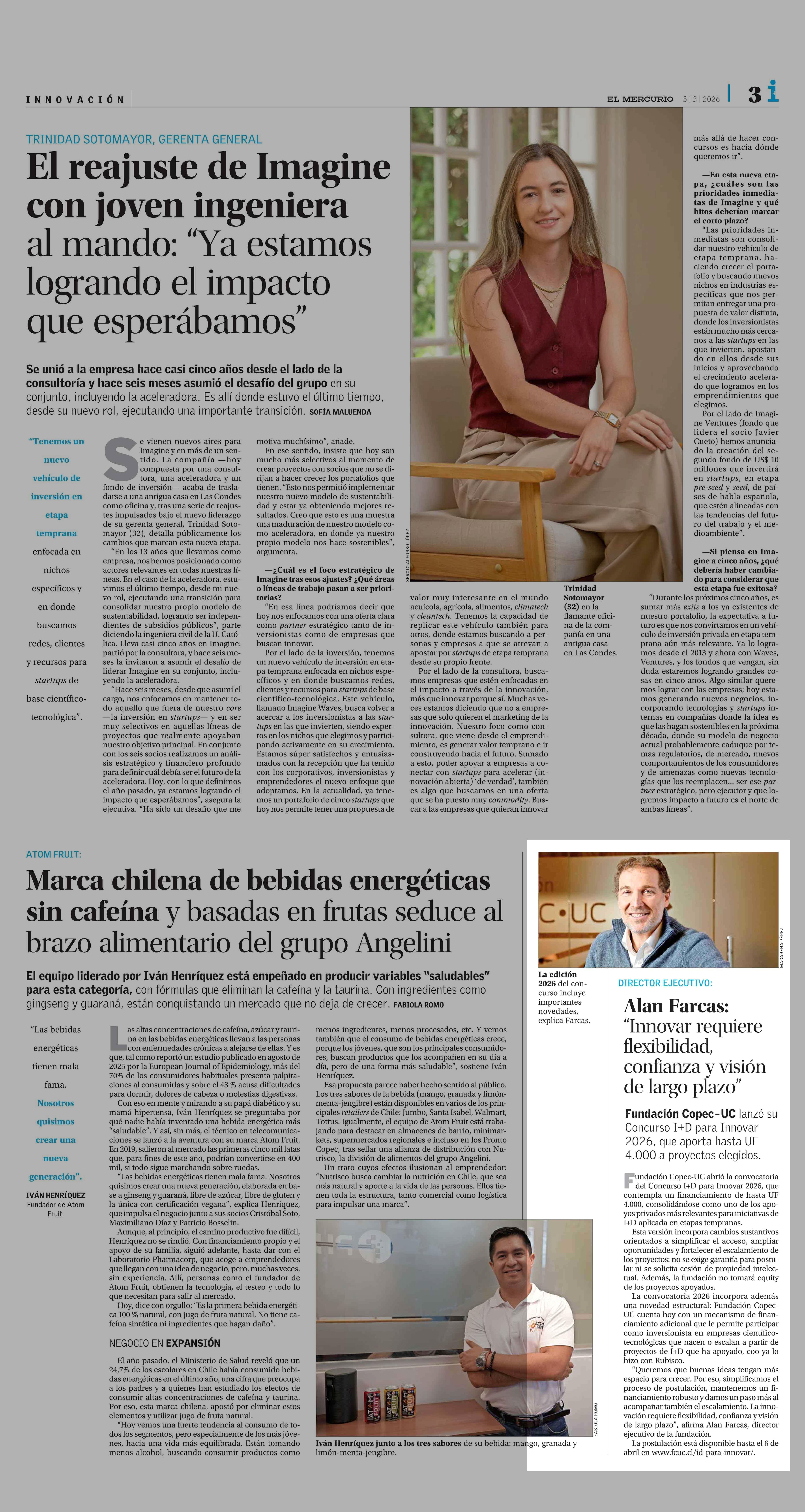 Alan Farcas: “Innovar requiere flexibilidad, confianza y visión de largo plazo” 05-03-2026 El Mercurio |