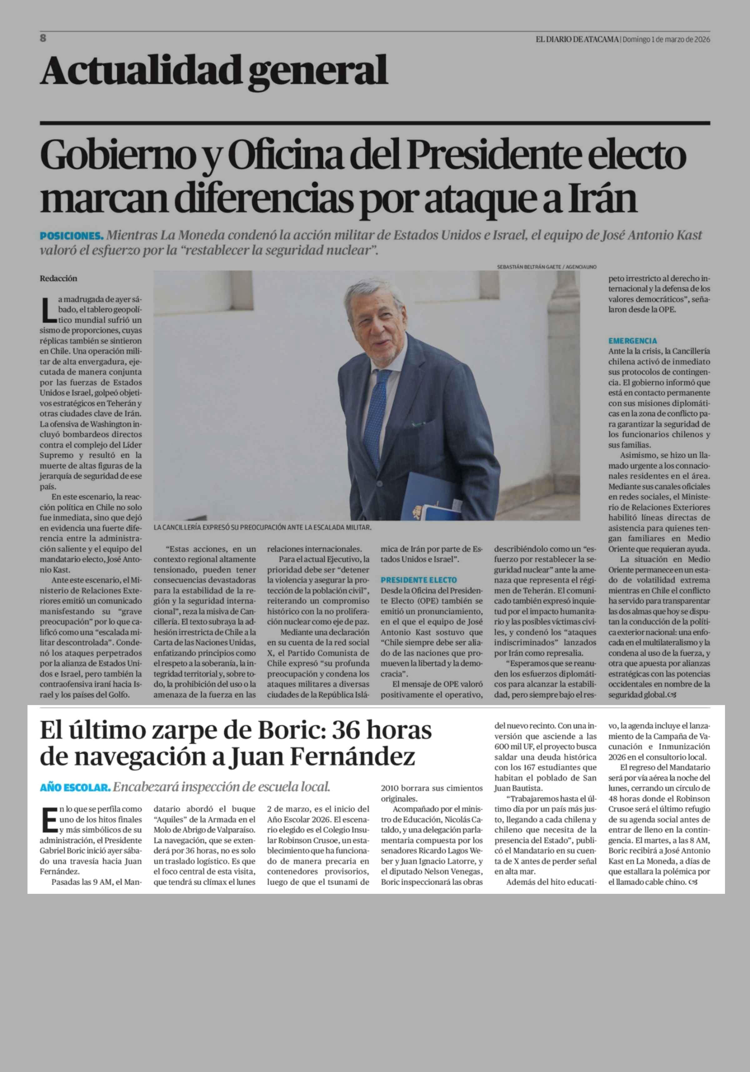 | Fecha: | 01-03-2026 | Sector: | Noticia general | Región: | Región de Atacama |