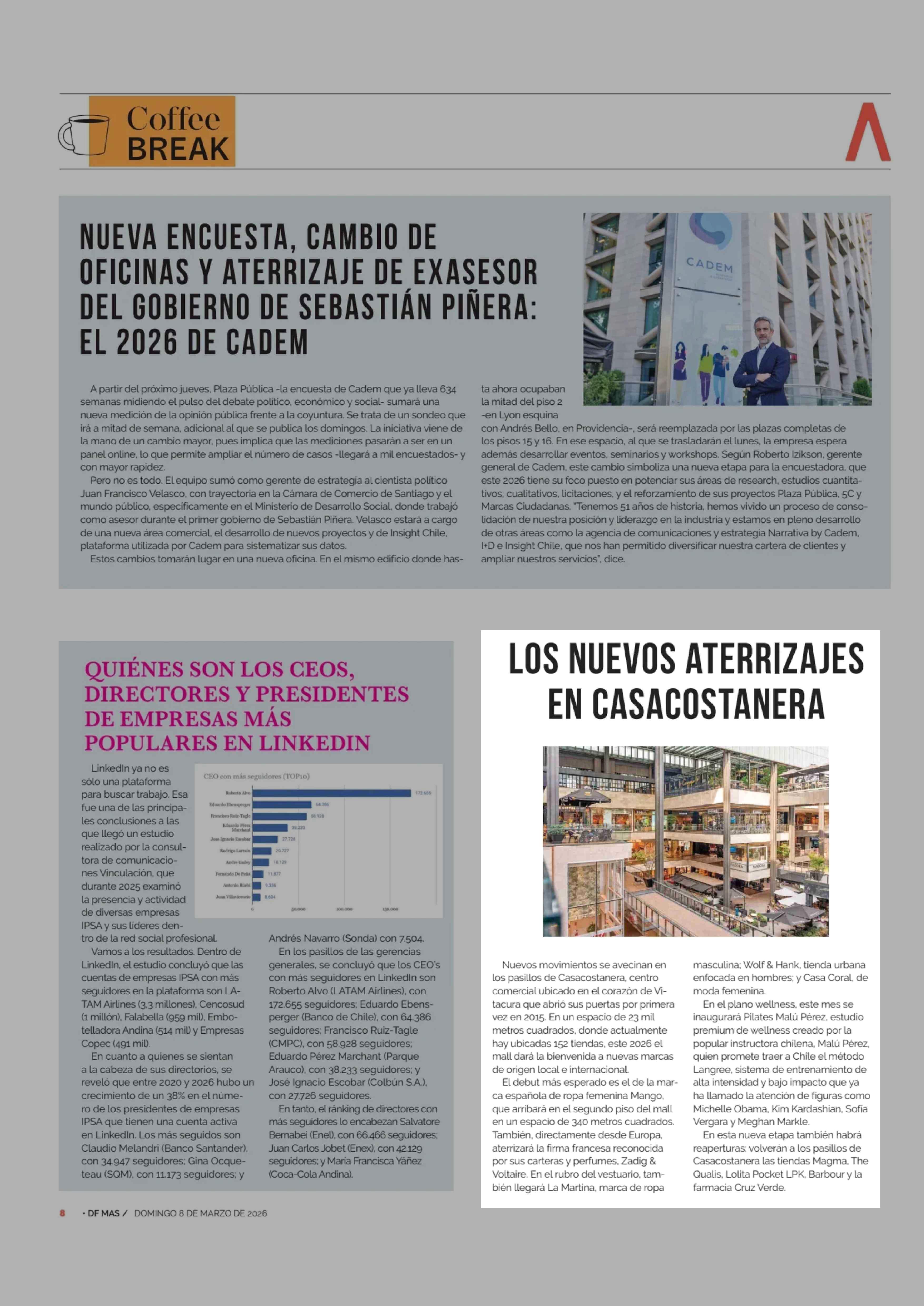 LOS NUEVOS ATERRIZAJES EN CASACOSTANERA 08-03-2026 Diario Financiero |